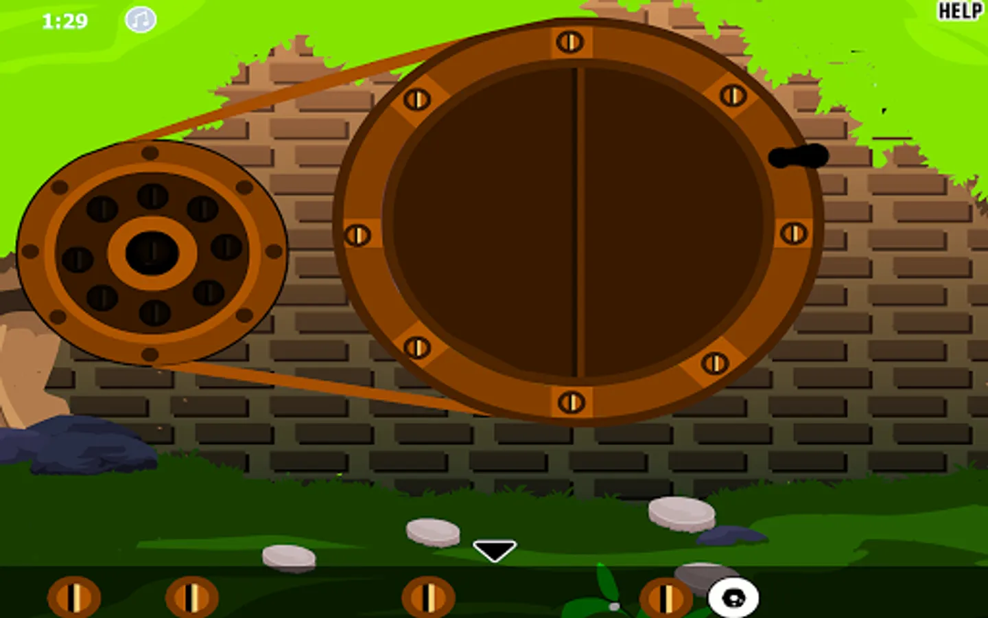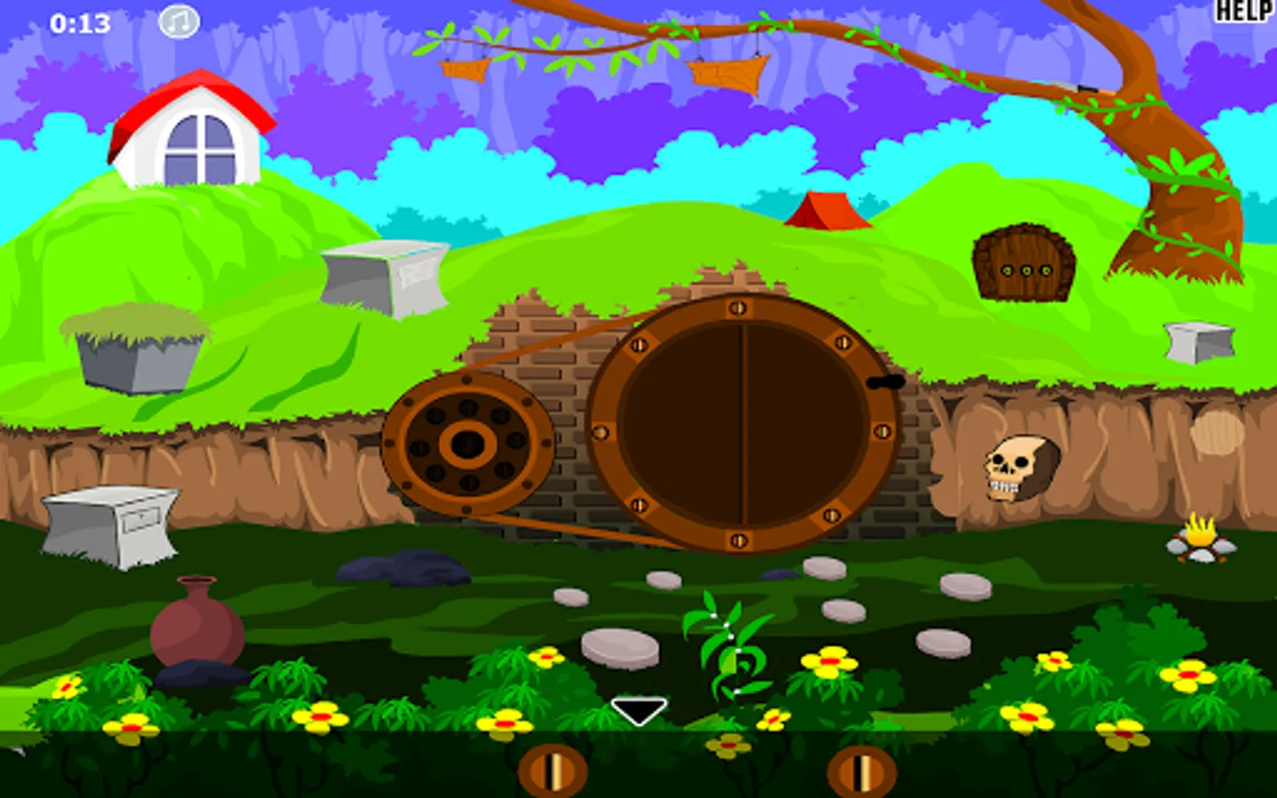 Get the jar below and use it in the fire and get a key. Ues the key in the keyhole to get a nut.