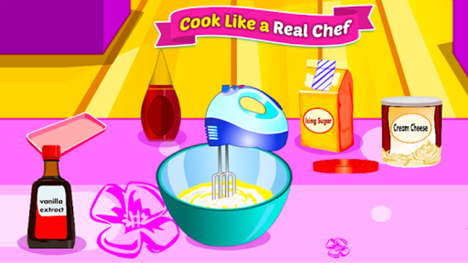 Following the instructions in the game prepares a delicious vanilla cream for decorating the cakes.
