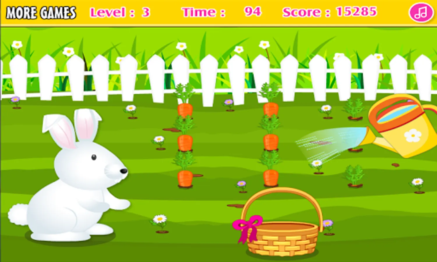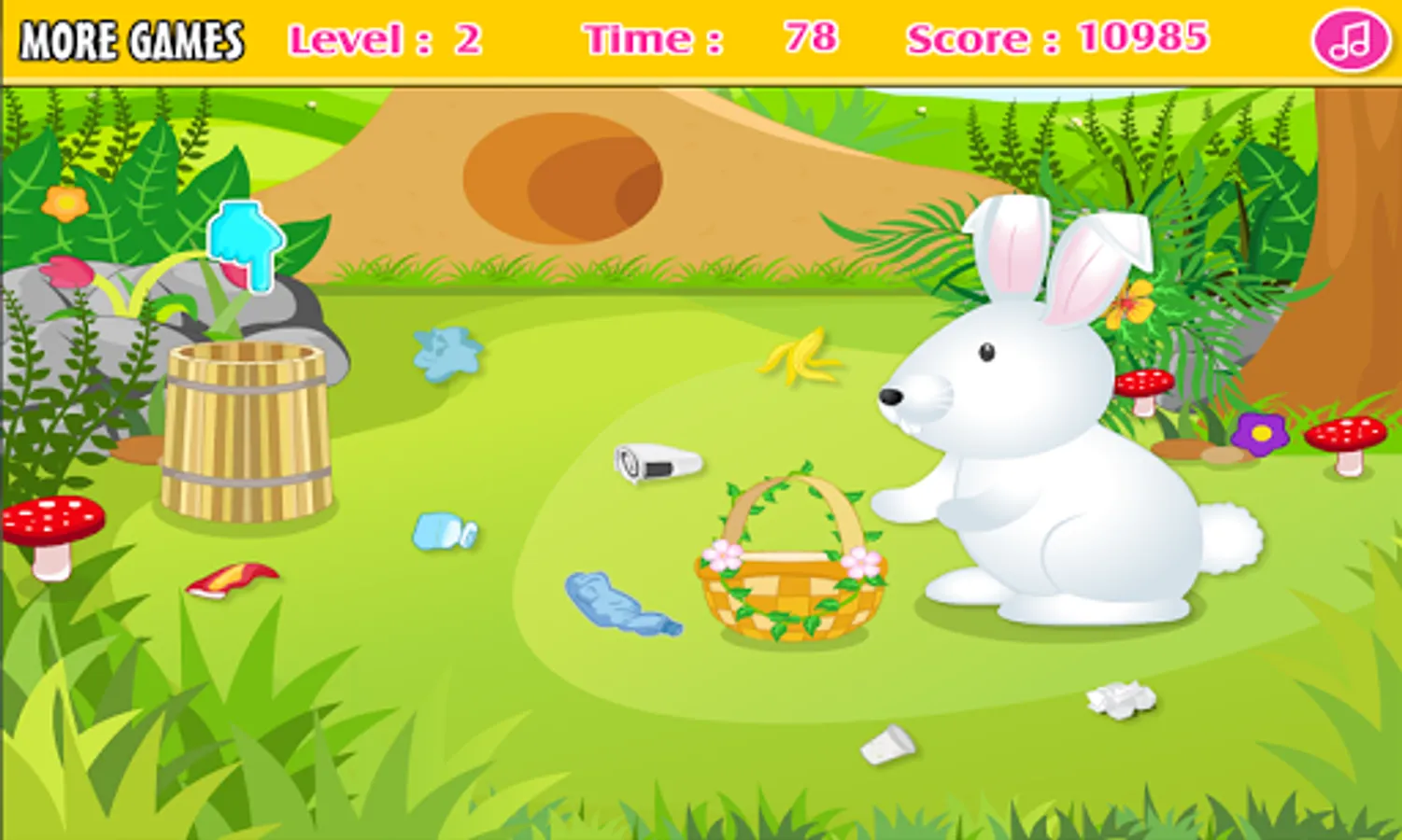 You have to throw at the garbage all the mess and also collect some flowers and mushrooms. Finally you will learn how rabbits cultivate their food, that means mostly carrots:).