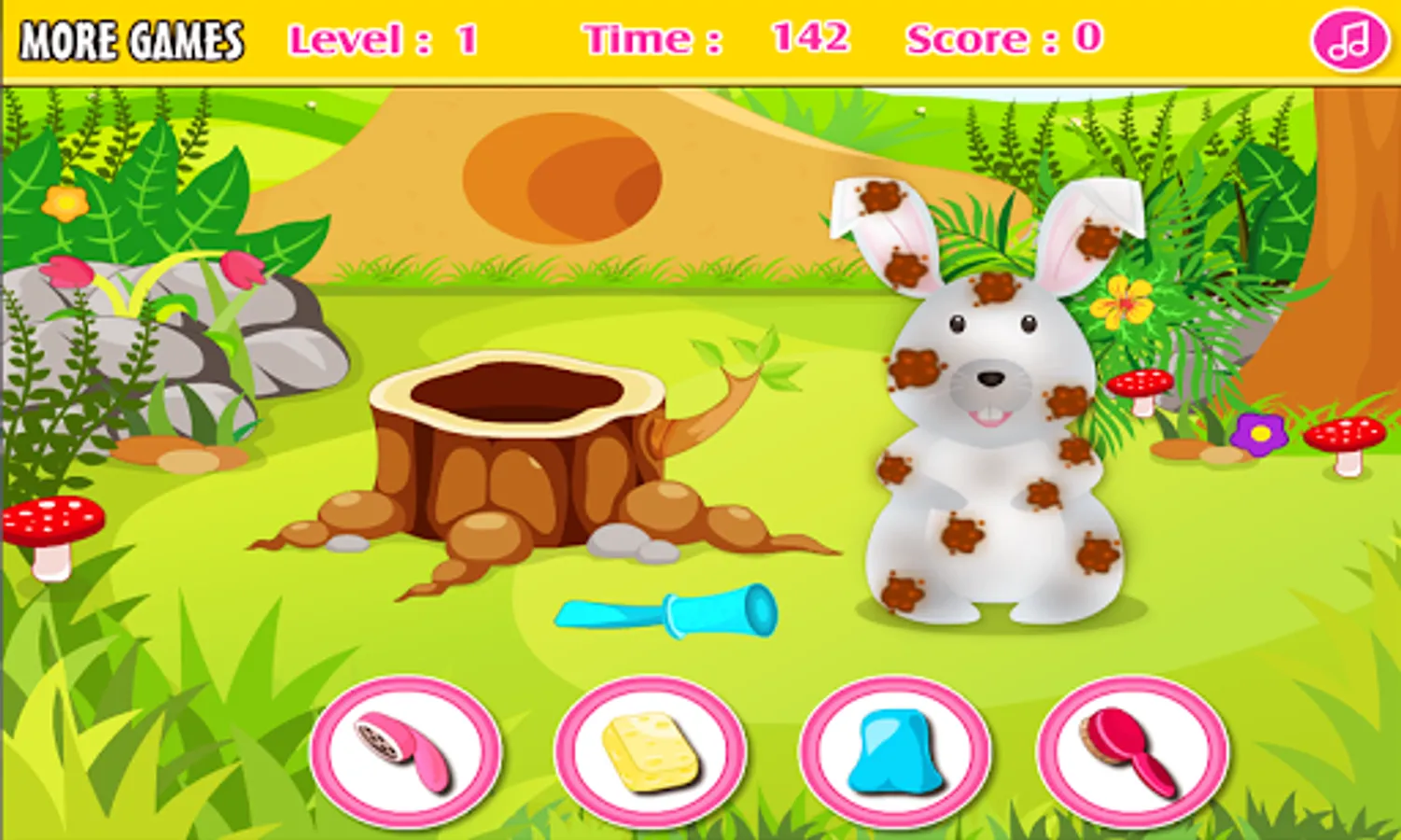 First step is to wash him and brushing him because he is very dirty! After you're done with bunny's hygiene, move to a new job: cleaning the forest, bunny's home.