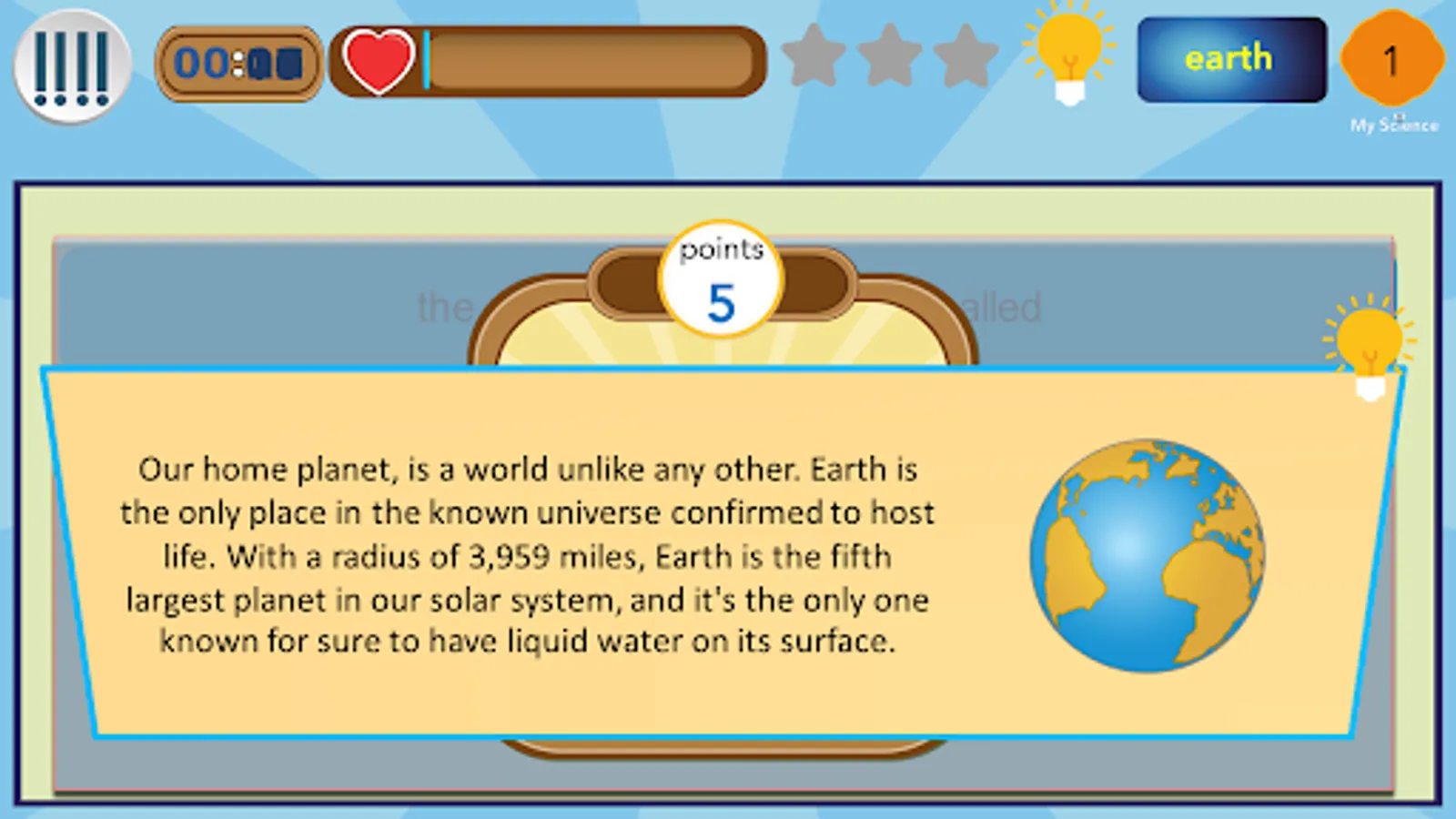 The application presents scientific concepts that enable the absorption of scientific information related to the planet Earth .