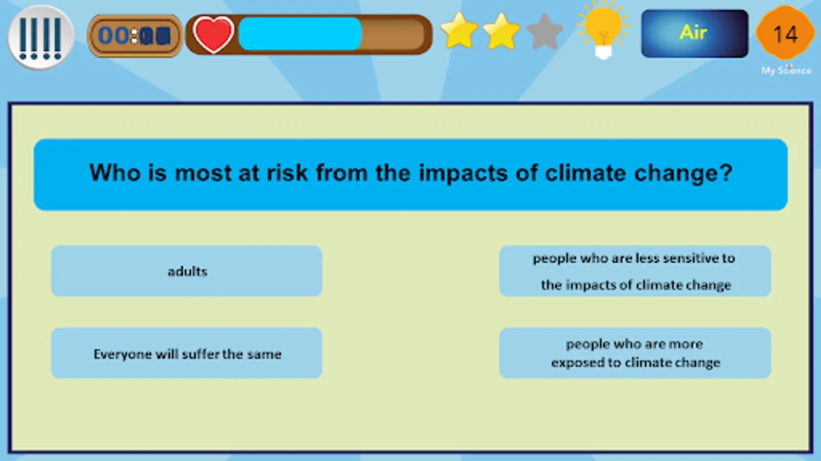 The application presents scientific concepts that enable the absorption of scientific information related to the water .