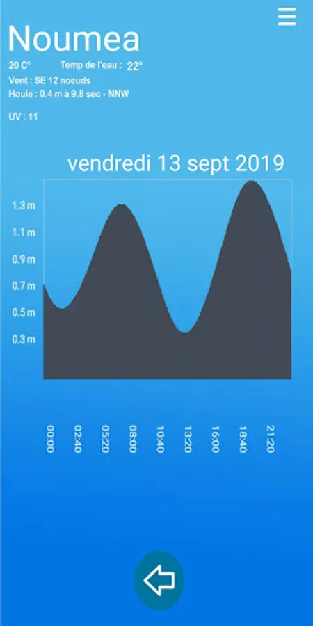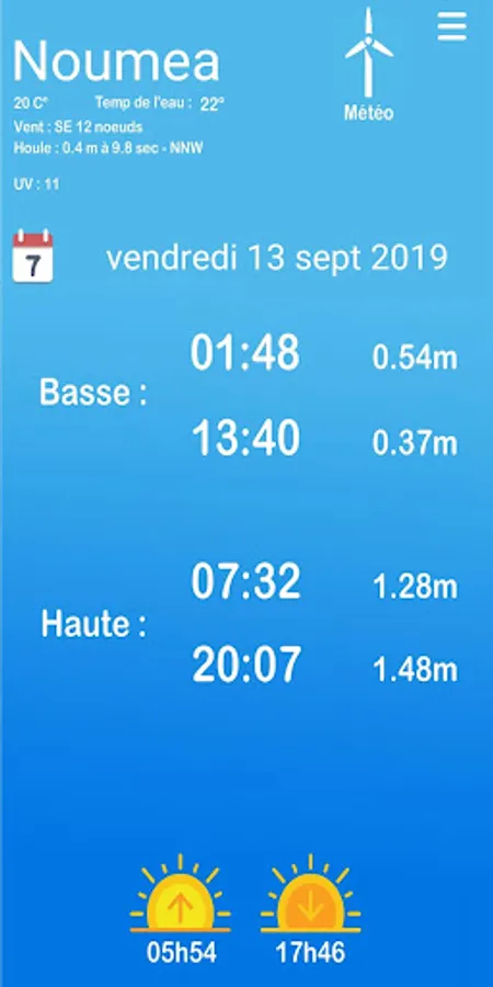 Find out about the tide times and heights at a dozen ports in New Caledonia, as well as sunset / sunrise times, weather, lunar calendar, wind and swell.