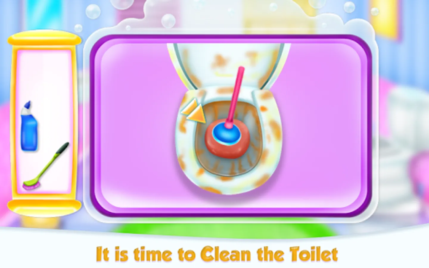 First, you have to make sure you eliminate that stinky garbage that is spread all over the bathroom. Use the tools you have and try to make each task in the way it should be done. There are another cleaning activities on there and to be able to reach the decoration part you must go through all of them. Clean the bath tube the sink and the toilet because there is where the most bacteria is gathered.