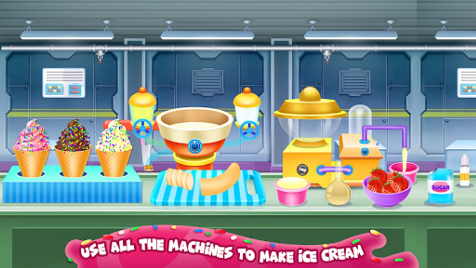 When you are handling an ice cream factory you should be aware of some facts that might influence your final product and you will notice those only when you are going to manage it all by yourself. So, play this cooking game and find what challenges prepared you in it's following stages and try to solve each issue that might come along once you try to create a delicious ice cream. Because of your room where all the magic of creating and designing is happening, you must make sure that the cleaning is in the proper standards and if not you should take care of that. Use the given tools to wash all the dirt that might compromise your process. Remove the garbage, swipe up the spider dust, get rid of the stains that are spread all over the walls and floor, repair the nonfunctional devices that need a recondition or even a total replace. When you are done you will be moving further to the part where the cream for the ice cream will be made. Cut the fruits, turn them into a paste and use all those sophisticated devices that are specialized in making your dough perfect. Add colorant and different flavors so you will be able to serve a diversity of yummy desserts. Next is the cone making. Use the recipe and the ingredients you've got to make the composition then fry it to be ready to get that cone shape. Put the ice cream in them and don't hesitate to decorate each flavor you've got which is the strawberry one, the chocolate and the apple one. Have fun and make your factory work in the right standards.