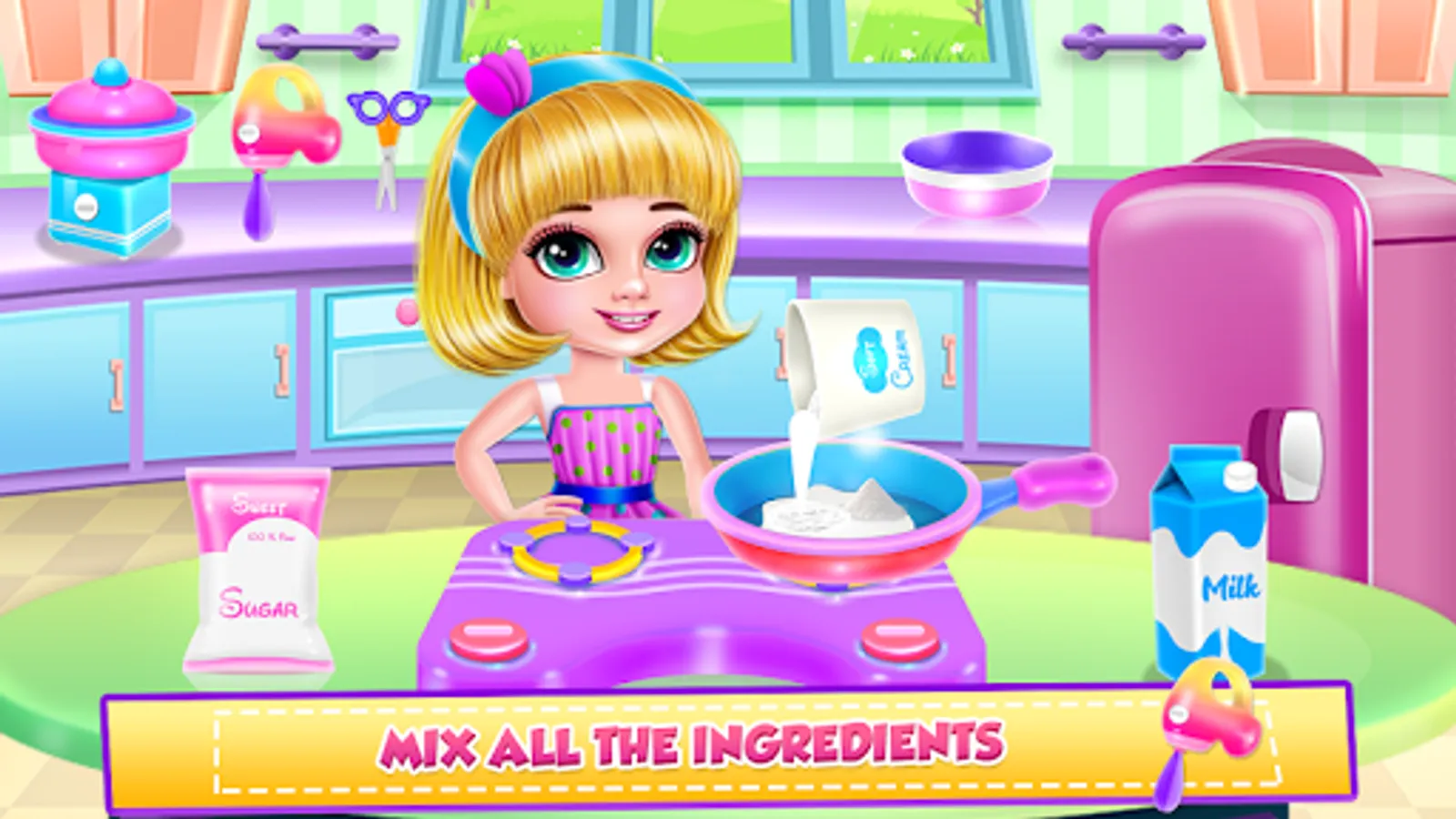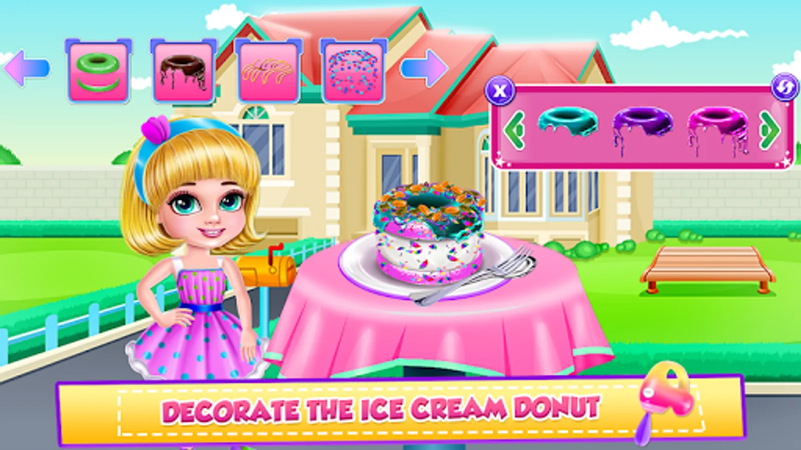 You love the donuts so much, but you also enjoy serving a cold delicious ice cream, now just picture how it would be if you could do both. This amazing cooking game will lead you to an extraordinary culinary adventure where you will explore and combine delicious flavors and interesting designs for this special treat. Something really cool is that you are making it from the ground and that is how you learn how to make it. In a big tray add sugar, milk and the rest of ingredients. This is actually the cream that you are going to put it in the freezer to transform it in the tasty ice cream you have to use inside that donut. Now you need to handle the dough of the cake. Grab a bowl, add flour, sugar, butter, salt and don't forget about the milk and the other things like the eggs. Lay the dough and shape it with that special device for donuts. Fry the raw donuts in hot oil. Once all the ingredients are mixed together, add the cream and try to use interesting details. This dish needs your attention when it comes to details and assembling. All you have to do now is to decorate these delicious pieces and prepare them for the show. Maybe you will change the design of the plate or you could add sprinkles on top of the prepared food, but don't hesitate to put on a caramelized glaze and why not, have a little fun while you accomplish this cooking challenge.
