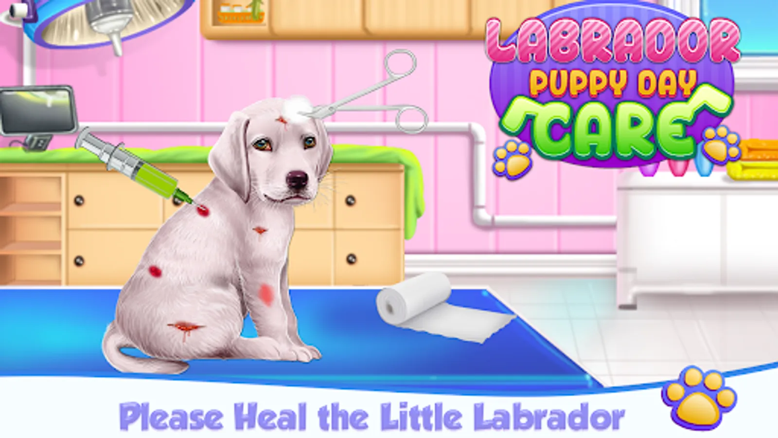 Take a look on the tools you’ll be using while you reach the part of his body that needs to be treated. Clean the harm area, apply the skin antiseptic, bandage his broken paw, handle his red eyes and in the end inject some vitamins for power. The bath phase implies a funny part where you and the puppy are playing with a whale to entertain this little guy. Wash his fur and then use the dryer to arrange it. Add a spray to confer a shiny look, but try to keep that messy lovable aspect too. Have fun and practice your skills while you are trying to be the best when it comes to take care of a little labrador with really bad issues. Keep looking for him and make sure you use all those tools you’ve got for this kind of problem.