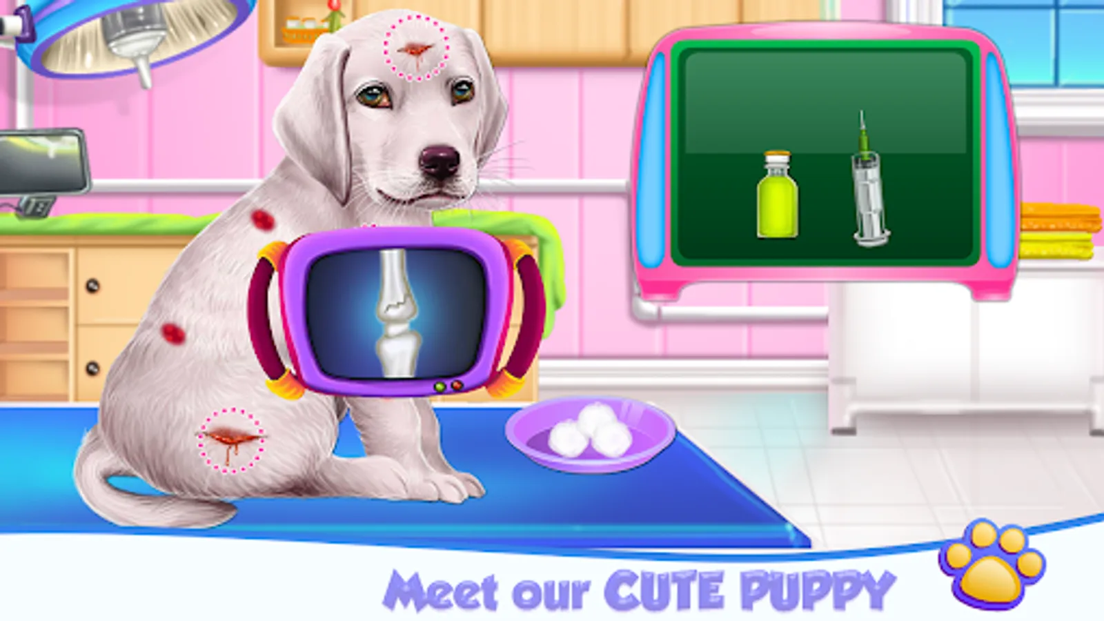 You have to be aware of the gravity of this puppy’s condition and you need to start right away his treatment so the recovery could begin just in time. Join this animal game to discover your inner skills when it comes to handle an injured puppy that requires a serious attention because of his damage and if you want to make him happy you are going to offer him a special treatment once with the nursing. Perform the medical steps accurately and don’t miss any of them because each one has an important role for this labrador and he is getting well once you’ve made those.