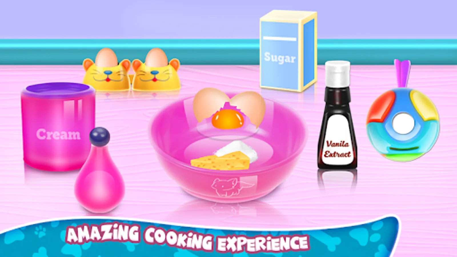 Find joy in creating and designing delicious cookies that are perfectly shaped like sweet kittens. Besides the lovely experience you will gain new skills and why not, find some tricks about how things are working behind the stage in the kitchen. To be able to respect your recipe you must purchase the required ingredients. So, your first job will be to join the kitty to the supermarket where you will supply all the needed food. Search for the proper things in the shop and make sure you won't leave without paying for them. Now you are in the kitchen and here you will grab a big bowl in which your dough for the cookies is about to be made. Step by step you will be taught how to use each tool and ingredient for your recipe. The butter, the eggs, the sugar, the flour and the chocolate extract will go together in order to be blended. Smooth the composition and move to the step where you will give a funny shape to that cookie dough. Use the tray to lay down the mixture and place the kitty shape in. Next, you will add the tray into the oven where the miracles are made. When the cookies are roasted take them out to decorate all of them. Use your creativity and don't forget that you are designing homemade rainbow cookies. Find the perfect flavored colors and add different details. Make them look like real kittens and have a great time doing it.