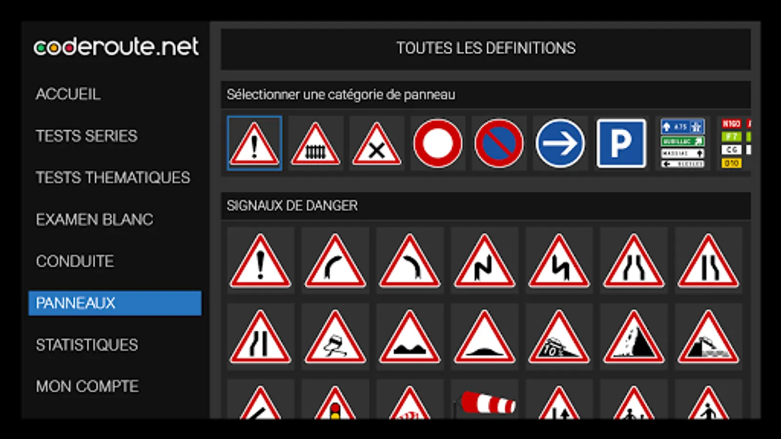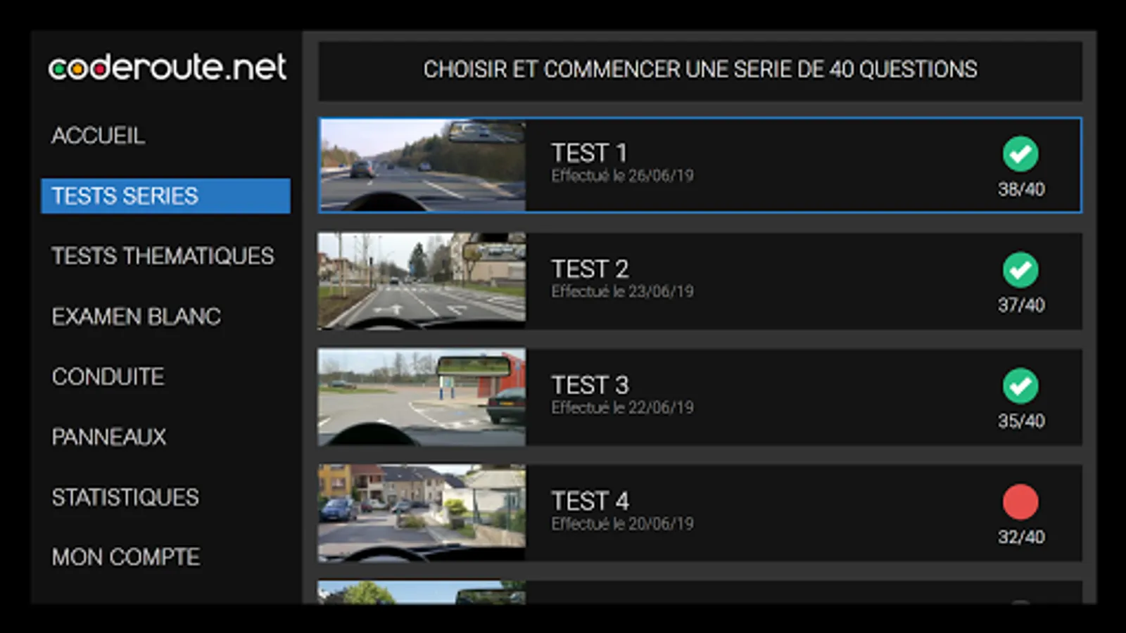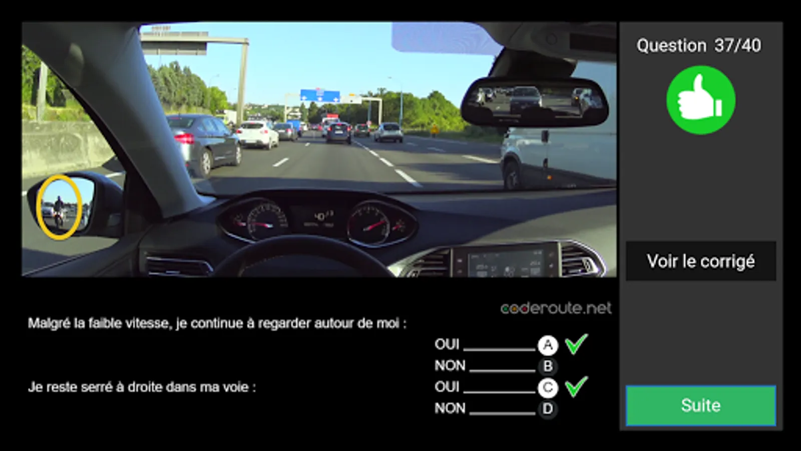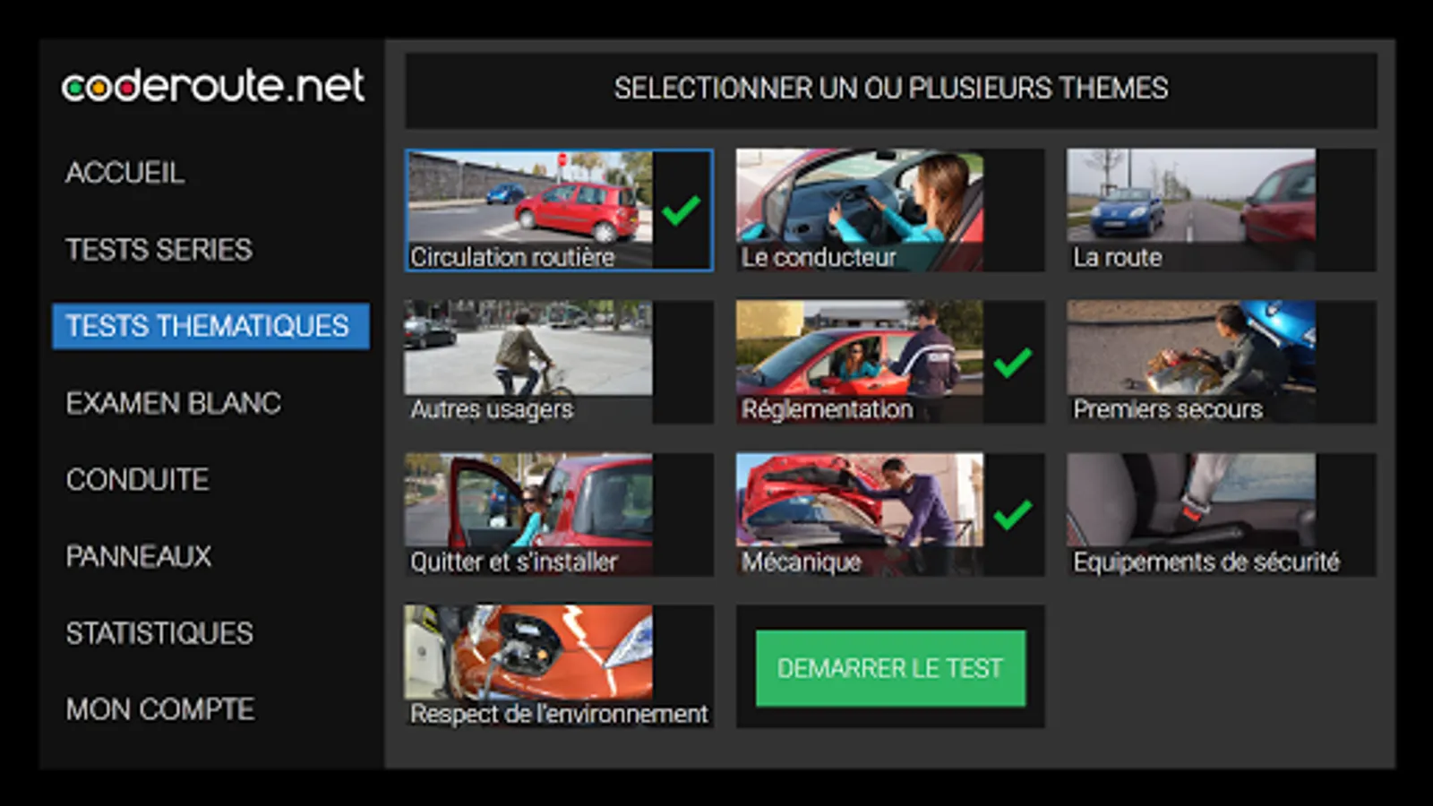 - QCM in series mode as at the auto école, white exam, but also thematic to perfect on each official topics of the code of the road.