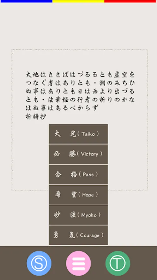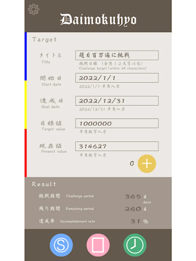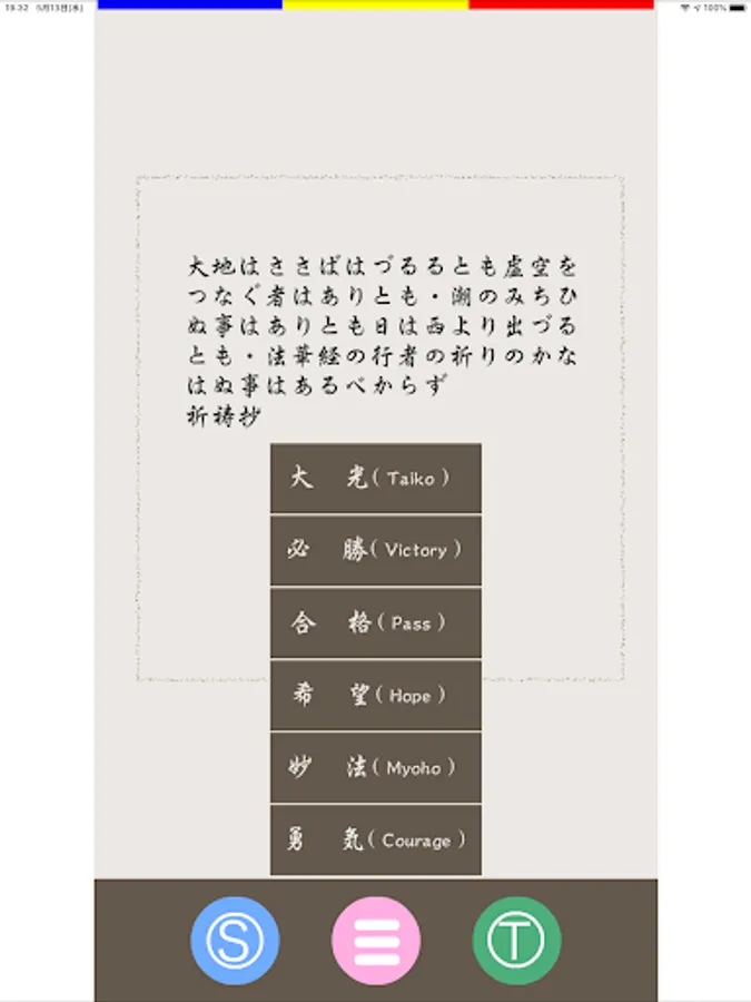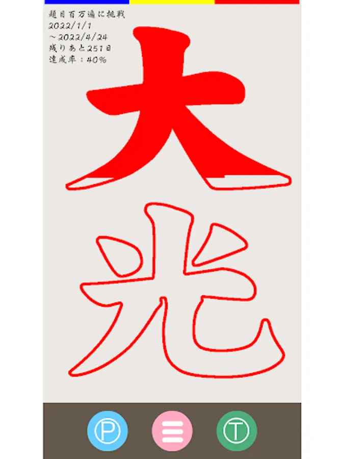 Every person has infinite ability to fulfill their hopes. Let's challenge every day with a theme for a big victory in life. This app will support your chanting until you reach your big goal with timer tool and kanji fill tool. as a feature
