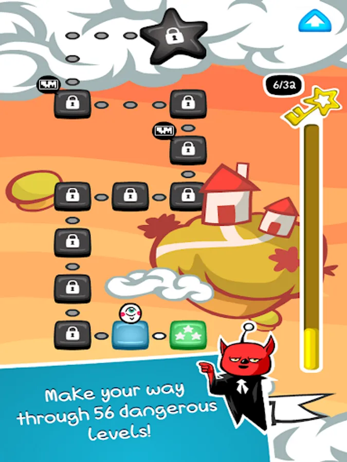 Go through multiple levels, avoid spikes, stalactites and fire, take care of bouncers, water, wind, gravity inverters and much more!