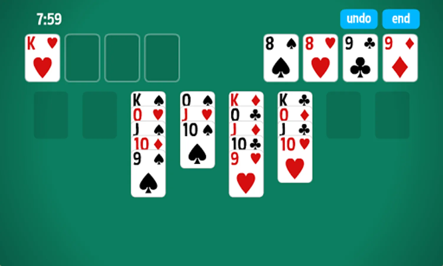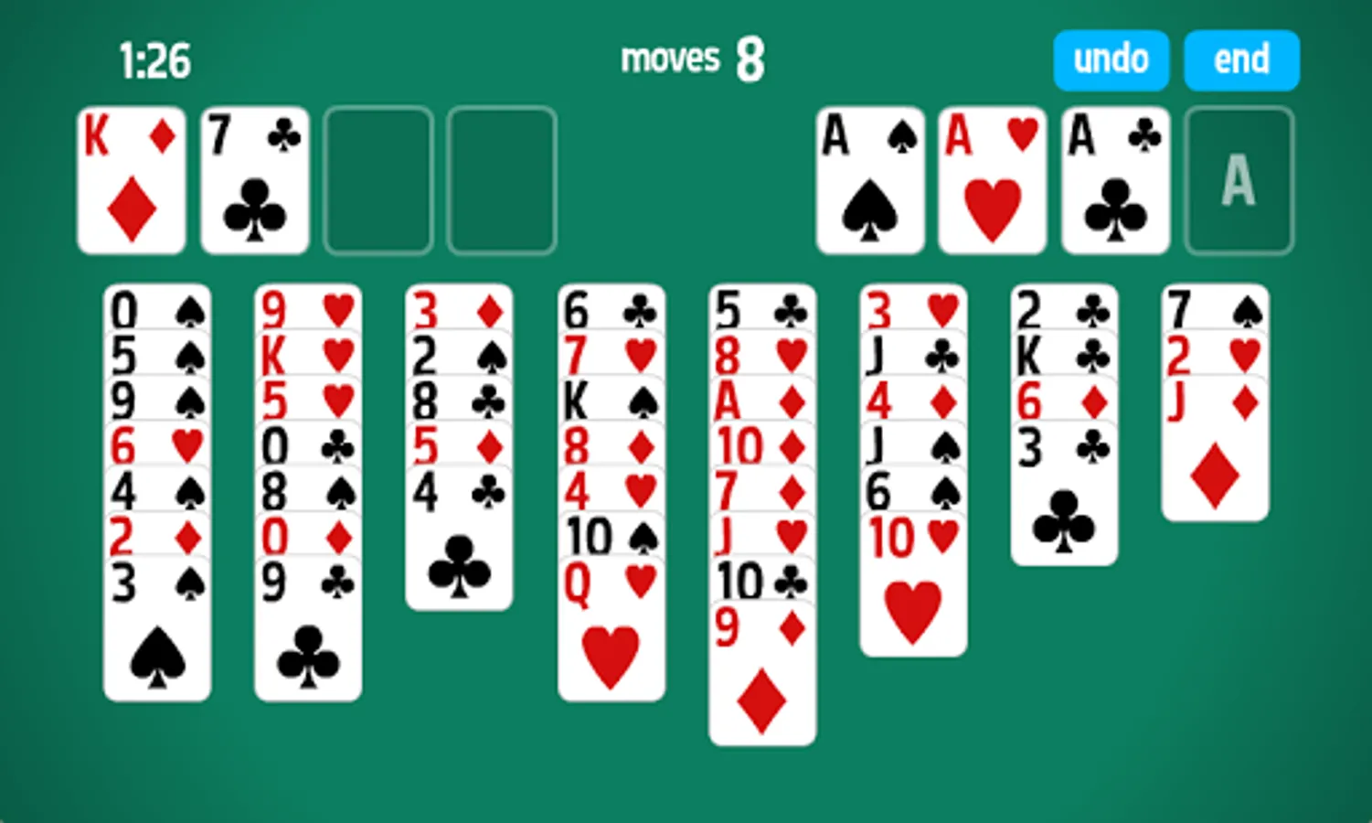 • Tap the cards to move cards to the foundations quickly