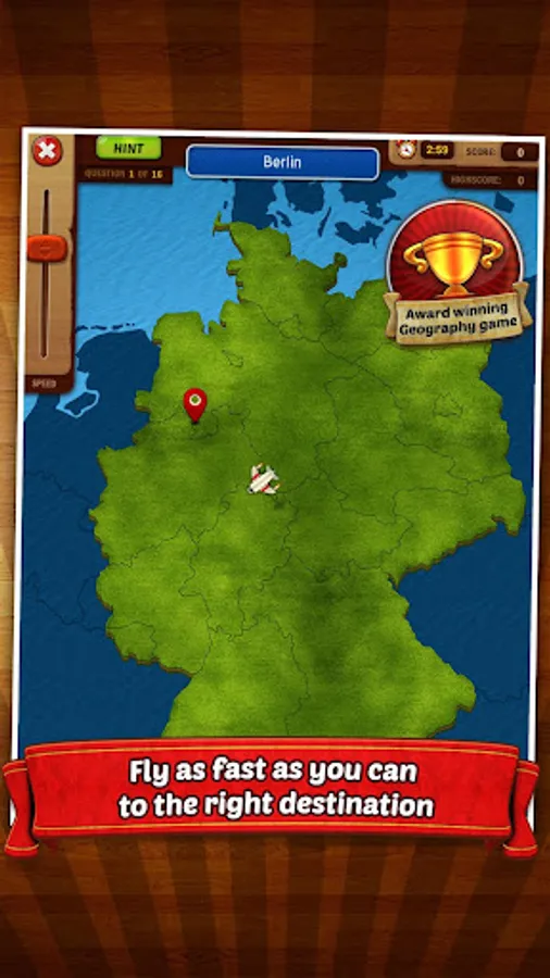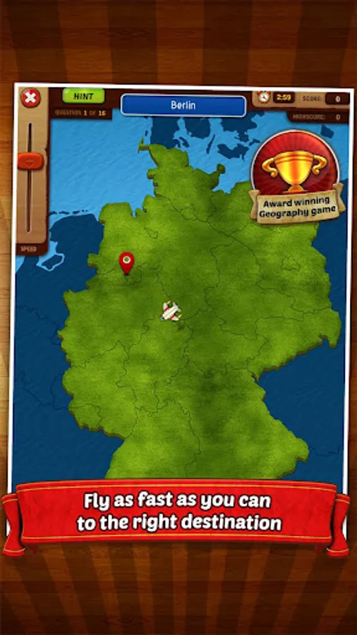GeoFlight Germany is a fun, addictive, challenging and educational geography game that will push your brain to its limit! Soar through the sky and learn the names and locations of provinces, cities and capitals in a game like no-other!