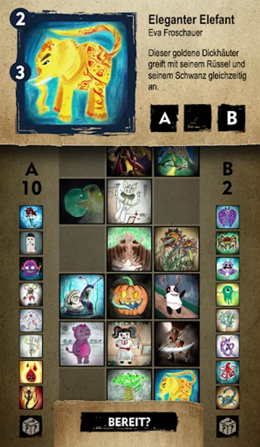 In this one-device Versus game, both players select their eight strongest fighters from a large host of nomsters and send them to the field in a turn-based battle to capture it. The player who has the most field shares after the last round wins the duel.