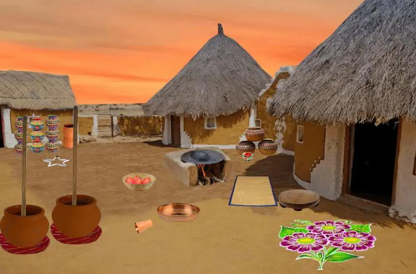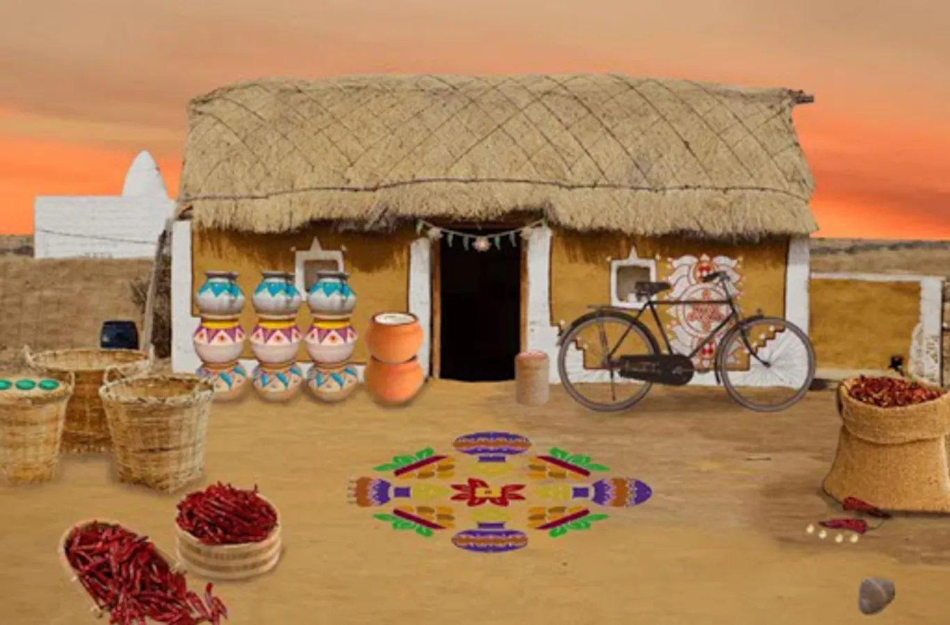 This is a beautiful village. Someone is stuck in a hut in the village and you are trying to help the person escape. Find the things useful to you in releasing the person from the village hut.