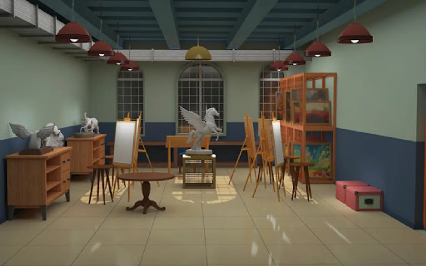 Escape Games: High School is a room escape game. Assume that you are a teacher working at this high school. You were preparing for your class the next day in the staff room but the janitor locked the school and went assuming that no one is in the school. Now, you are stuck inside the school and you need the key to escape. There will be a spare key in the school and you must find where it is kept. Find the key with the help of clues and hints and escape from the high school. Have fun!