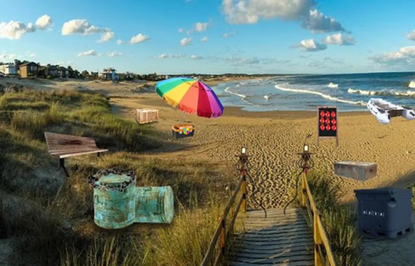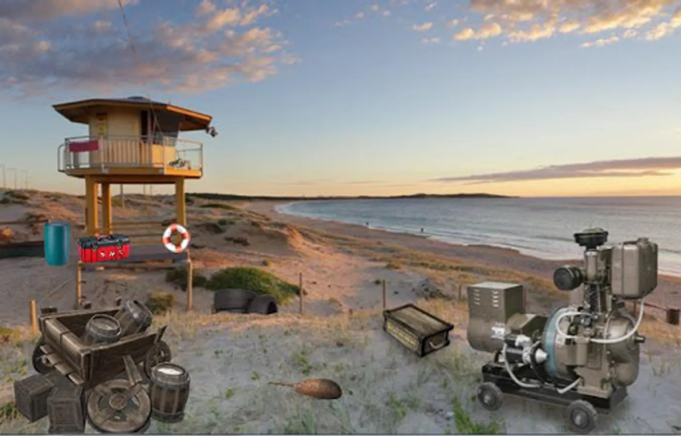 This is an outdoor escape. Assume that you went to an island for the summer vacation with some of your friends. After the vacation you stayed back as you wanted to extend your vacation but after a few days you got sick and felt like going back home. But unfortunately, there is no boat or ship available to take you back home. Hence, you have decided to do something risky and escape from the island on your own. Collect relevant things and make use of them to escape from the island. Have fun!