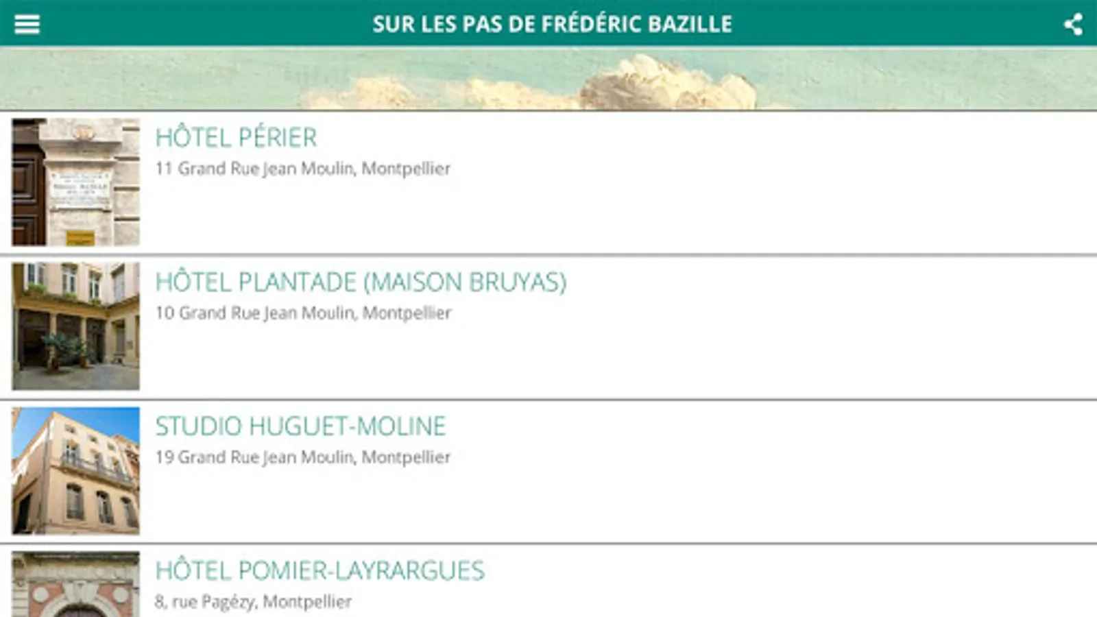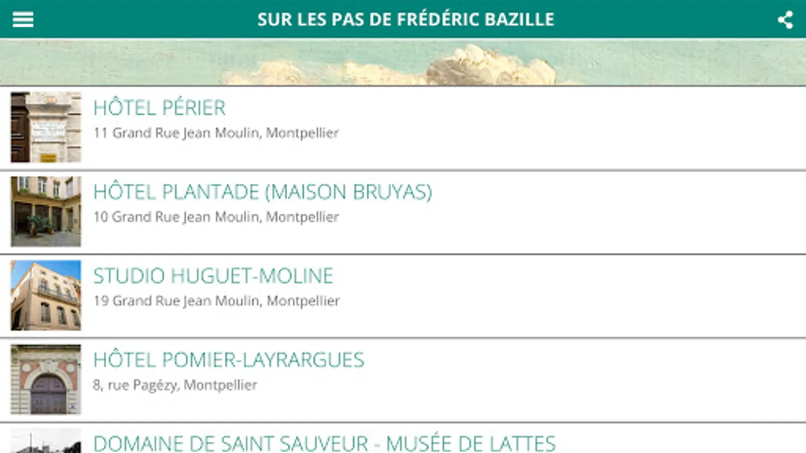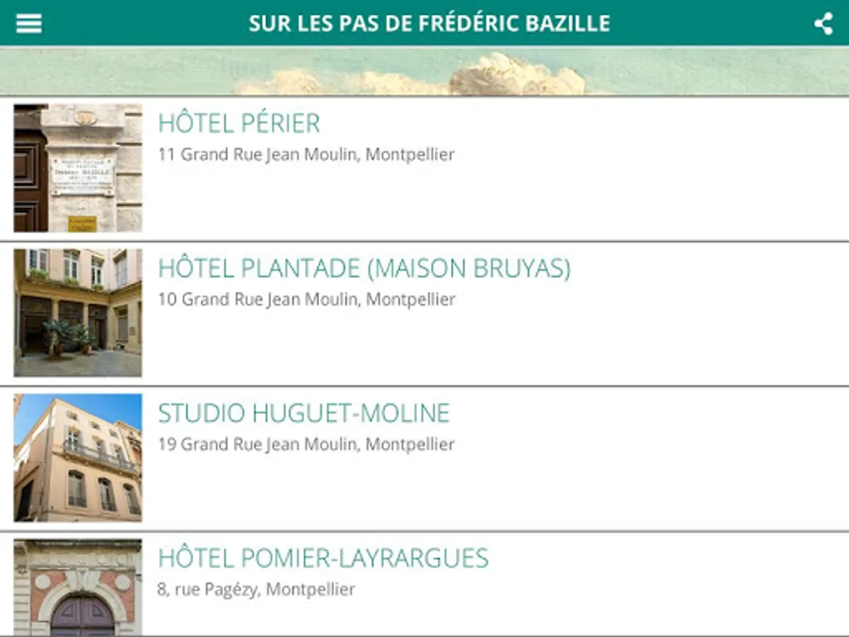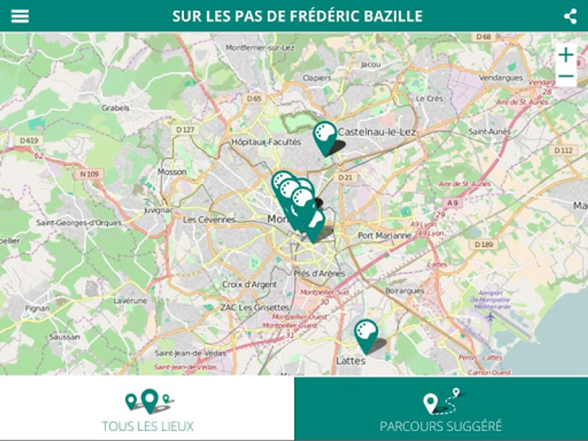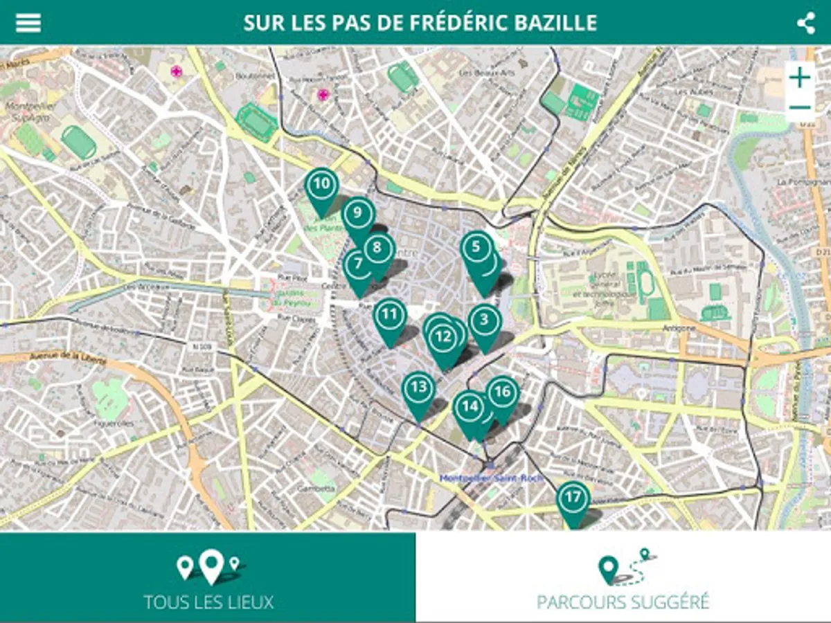 Richly illustrated texts used to explore Montpellier the Second Empire, discovering the places of life of the painter and his family, as well as those that evoke his memory. Find many anecdotes about the painter's life and the city of Montpellier. This localized geo app allows you especially to visit in autonomy the pedestrian historic center of the city and its public gardens.