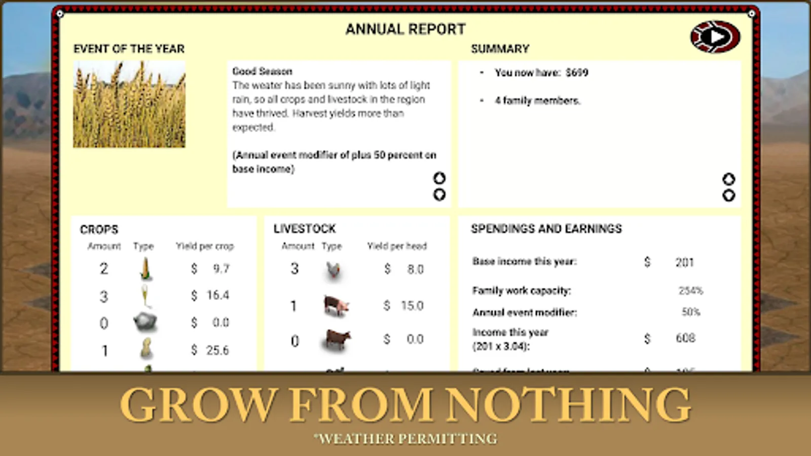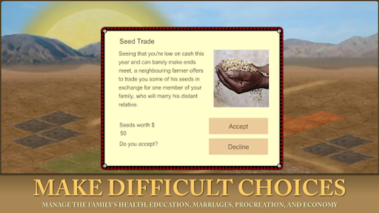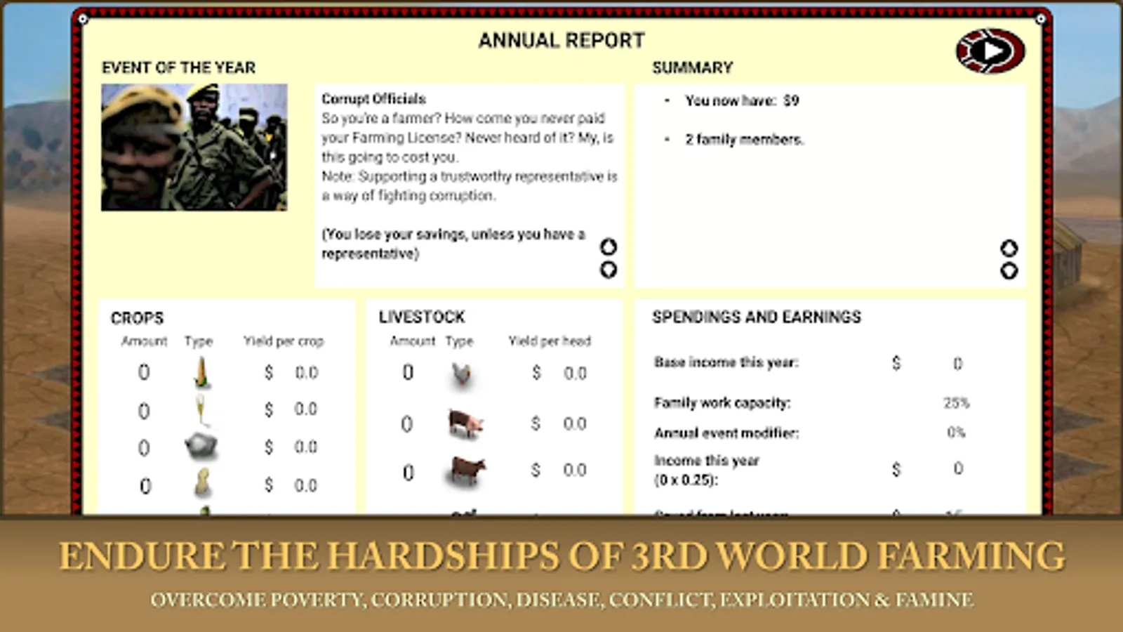 All it takes for things to go wrong in this game is one bad harvest, an unfortunate encounter with corrupt officials, a raid by guerillas, a civil war, a sudden fluctuation in market prices, or any of the many other game events, that might never happen to families in industrialized countries.
