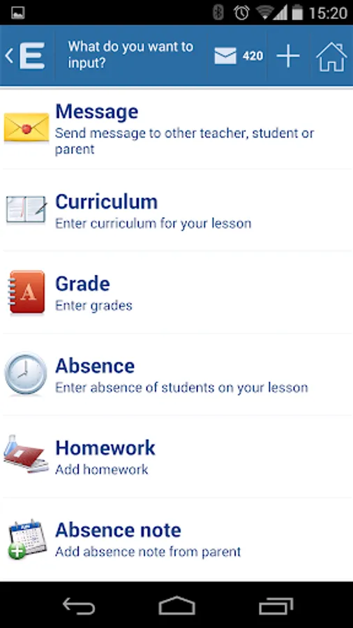 Input absent students. Class teachers can also input absence notes or simply allow parents to send electronic absence notes directly from their mobile phones.