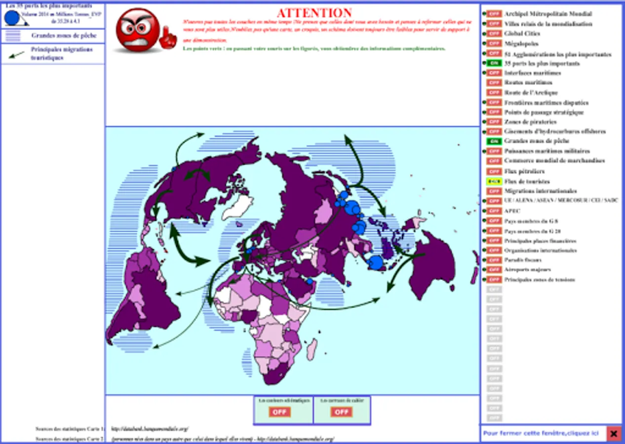 3) Allows you to superimpose on the cards thus created layers to "fix" the main elements of the world space (cities, ports, major flows ....)