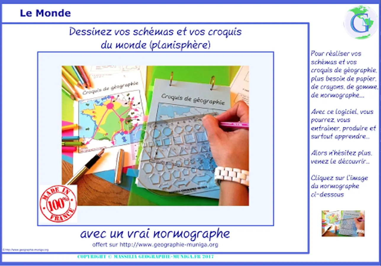 It also comprises tools for drawing software, a figurative palette of normographe kind (Munigaphe) integrated.