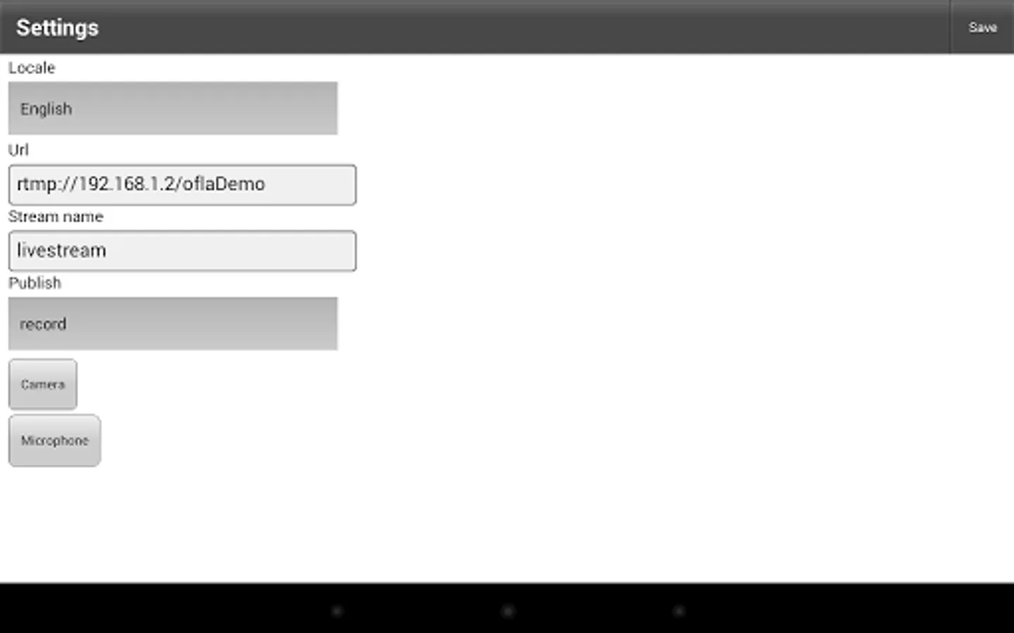 Android Air application for streaming to Flash media servers. This application publishes audio and video to a Flash media server and allows a lot of customization. More features will be added at a later date.