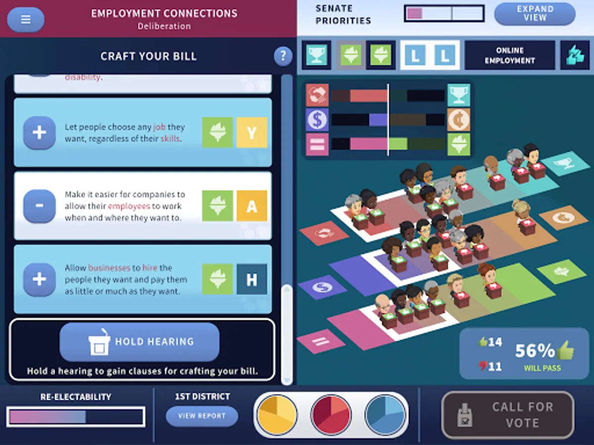 Want to make some laws? You can in LawCraft, where you play a member of Congress from the state of your choice. You'll pick an issue that's important to you and your constituents and take it all the way through the law-making process. If you're successful, you'll have a bill you can print and show off. See if you can make the compromises necessary to get your bill passed and still make a law you're proud of!