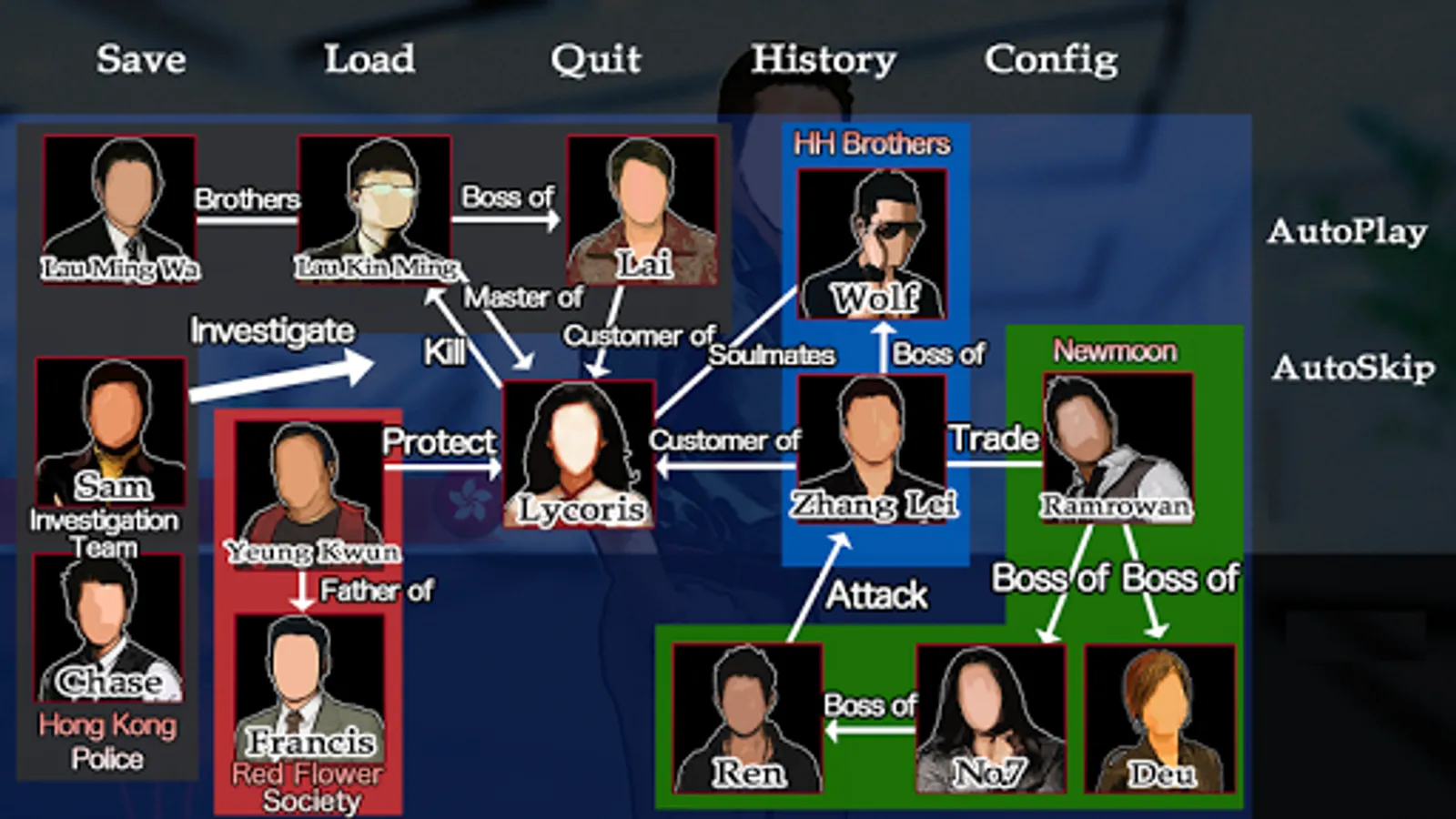 Red Spider2: Exiled is a Hong Kong noir style visual novel inspired by many hong kong movies, especially Infernal Affairs series and Johnnie To's films.