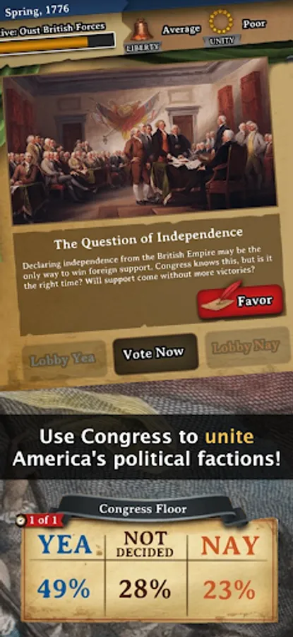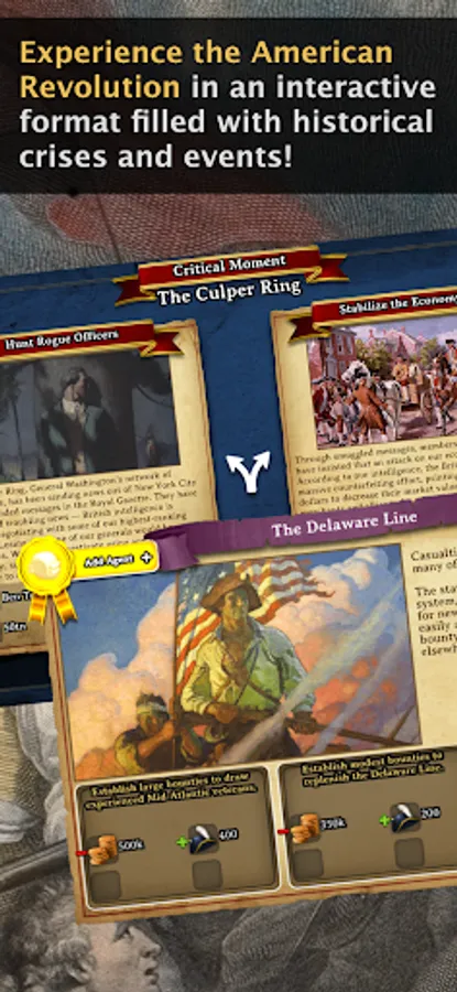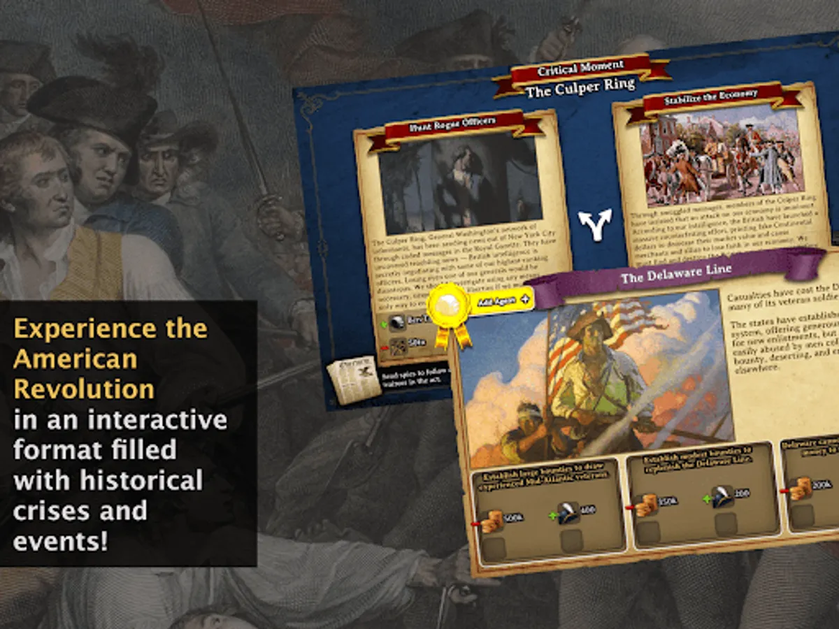 * Navigate over 150 historic events and dilemmas faced during the Revolutionary War, illustrated using more than 200 images—some of which spring to life to recognize critical moments in the course of gameplay.