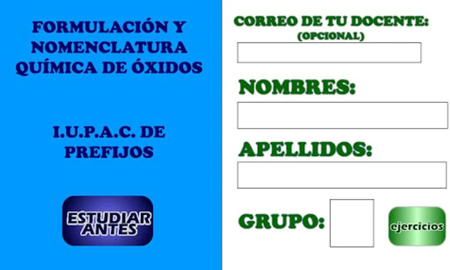 Exercises, where you will have to formulate oxides from your name.