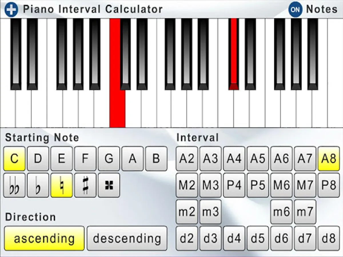 In music theory, an interval is the difference between two pitches. This app gives you a quick interval reference at your fingertips. Whether you play the guitar, piano or the violin, you will benefit using Piano Interval Calculator.
