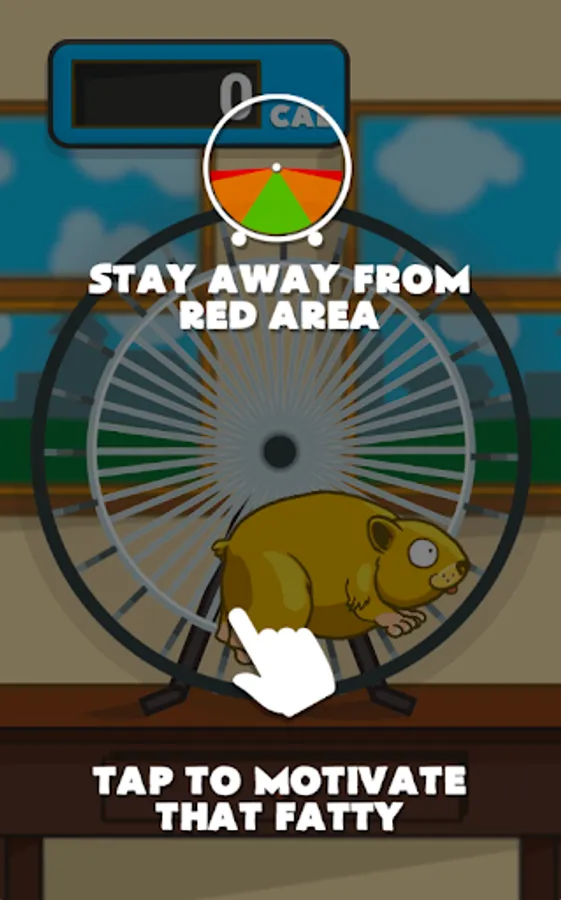 Motivate him to burn calories by running in a hamster wheel! You do this by taping your finger repeatedly! Each time you tap fat hamster moves forward. Don't make him run too fast or too slow because he will fall out. It's fun and easy to play, but hard to fully master. Try to burn as much calories as you can and share your score with your friends. See who's better in burning calories.
