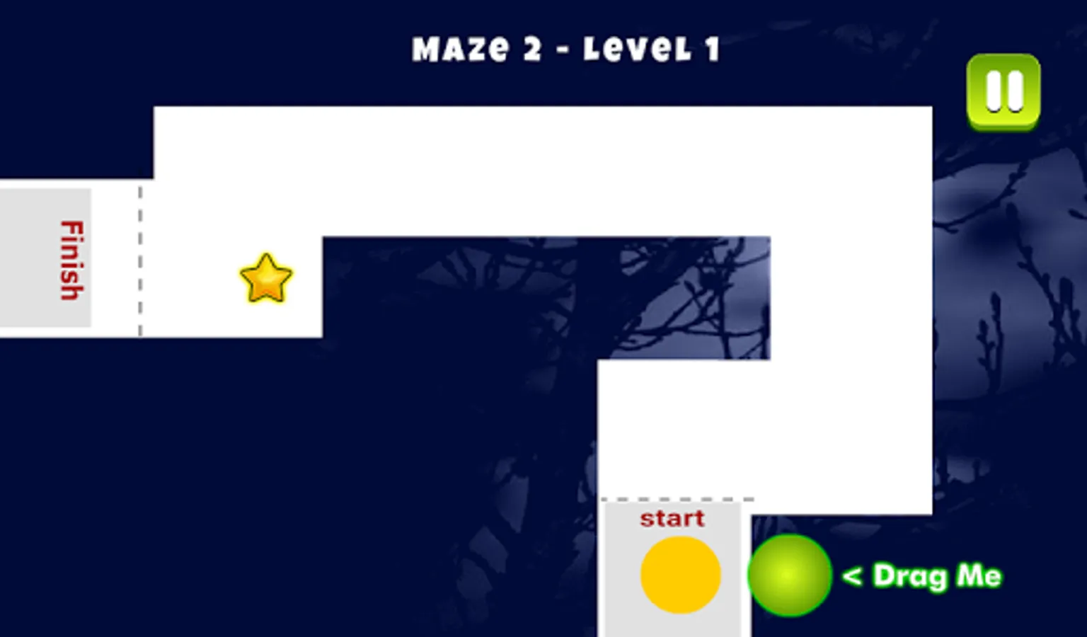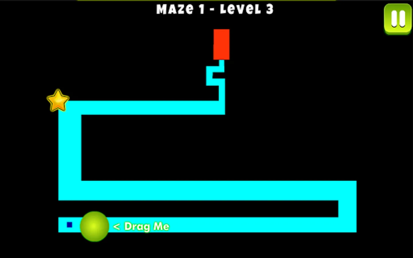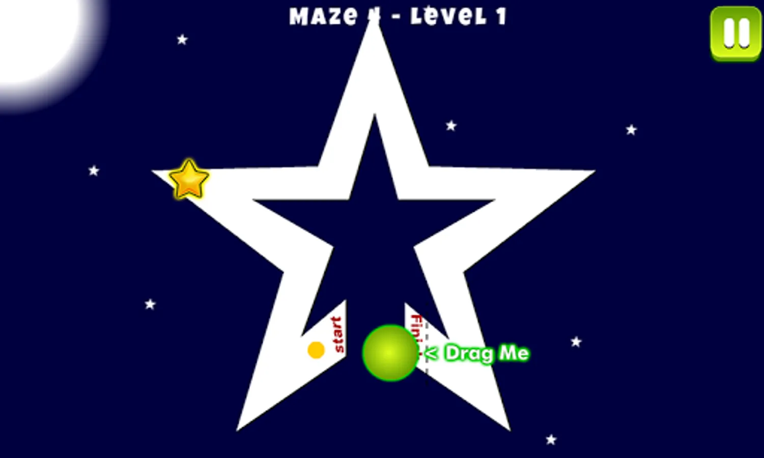 Drag the green circle in order to move the dot over the path. Do not touch the walls get to the finish line so you can play the next level . Collect stars during the game in order to open new mazes.