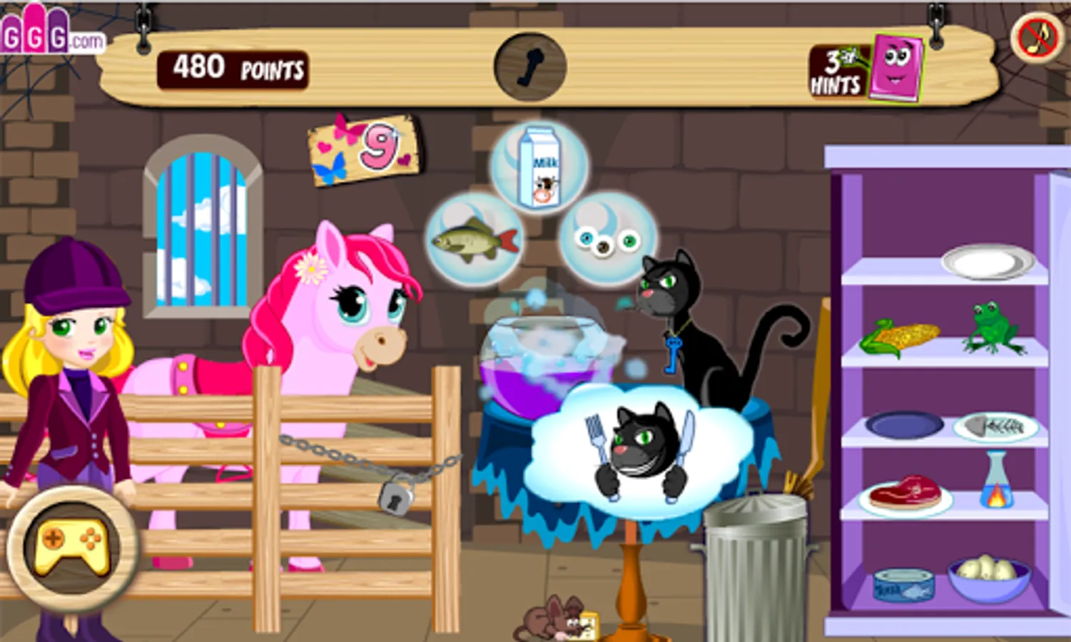 After you find where the pony is held hostage by the wizard, you must find all the objects to build your way out of the wizard’s territory. You have to cross over on the other side where you will be safe and no one can harm Juliet neither her pony!