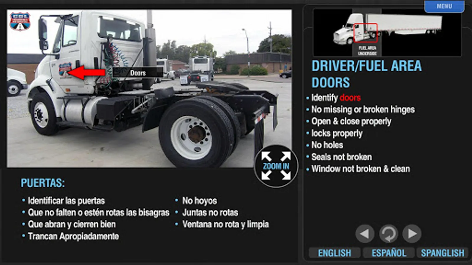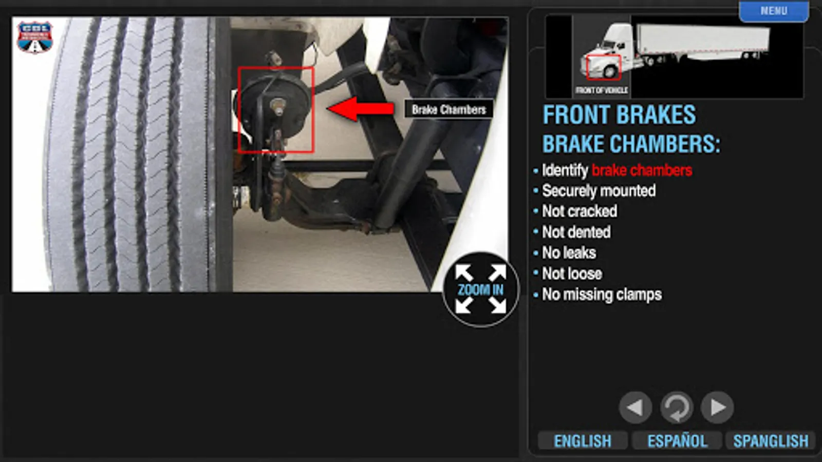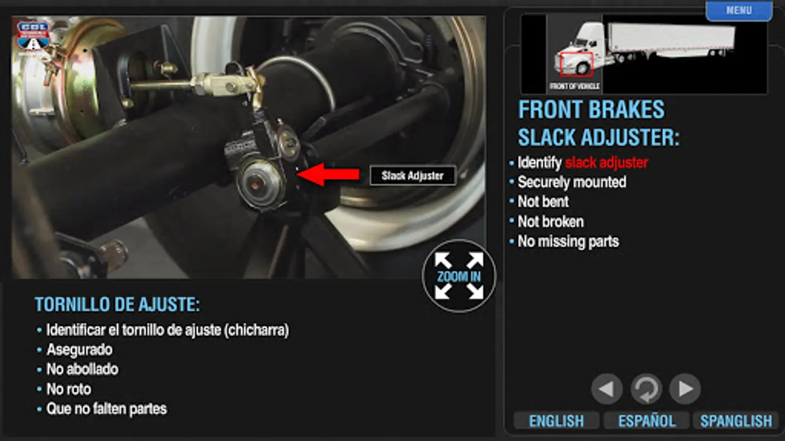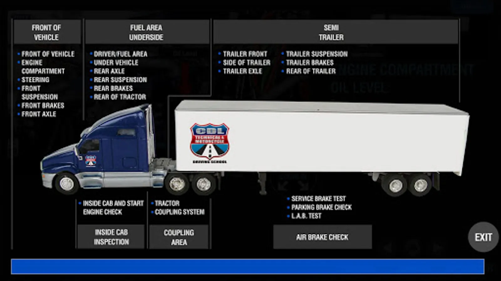 CDL Pre Trip Inspection Class A - Tractor Trailer App is designed to help you learn the proper techniques to pass the Pre-Trip Inspection section of the CDL Skills Test (Class A - Tractor Trailer). The App uses a vehicle representative of the vehicle, which would be used to take the CDL Pre-Trip Inspection Test. As with most tests, the way that you present the required information to the examiner is key to successfully passing the test.