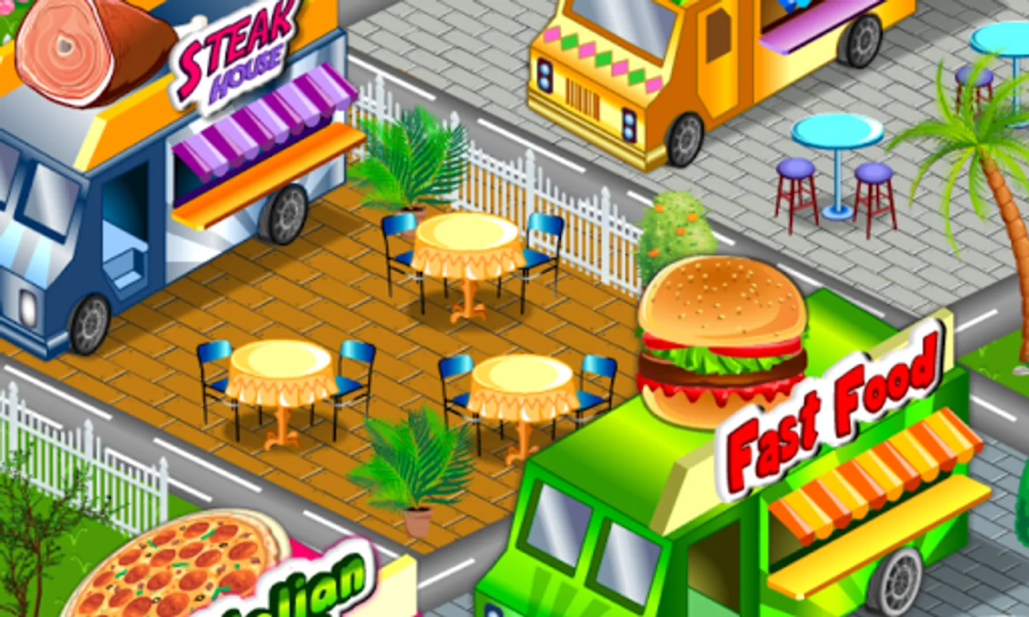 At level 3 you are ready to prepare all type of steaks. All the upgrades achieved in the previous levels, burger restaurant and pasta restaurant,