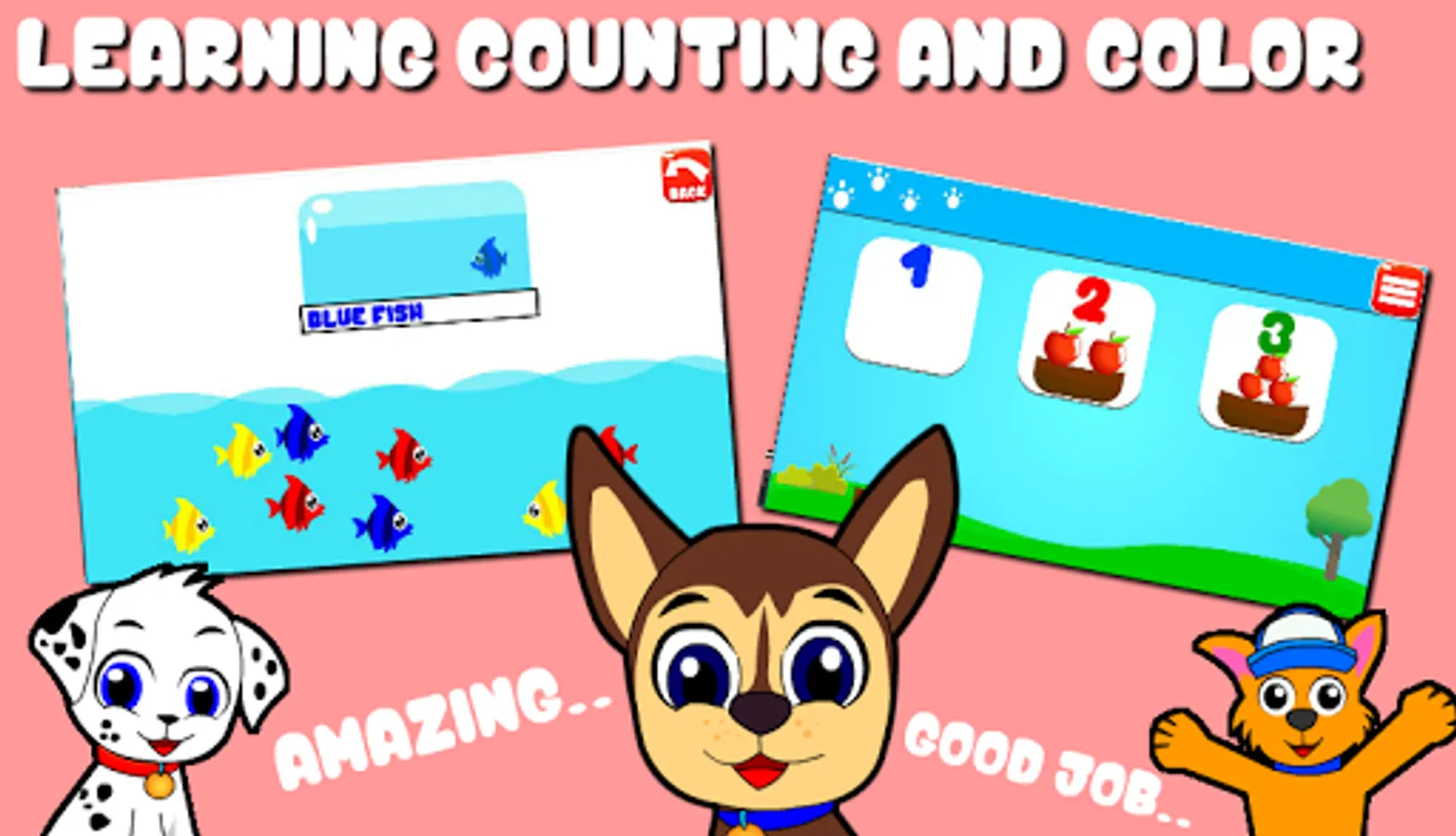 This game will teach your child to learn letters, numbers, colors, animals , fruits and many more !!! play and learning with cute puppy, you can patrol in sea, paw the fish, using train ABC, play jigsaw puzzles, play puzzle, play match number, balloon pop, bubble pop and many more !!!