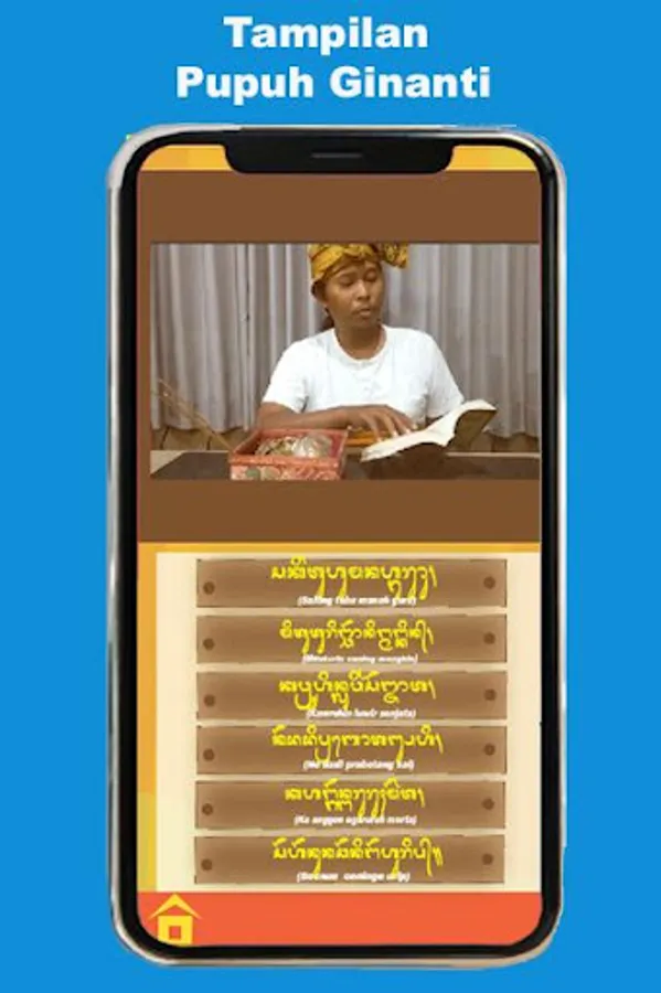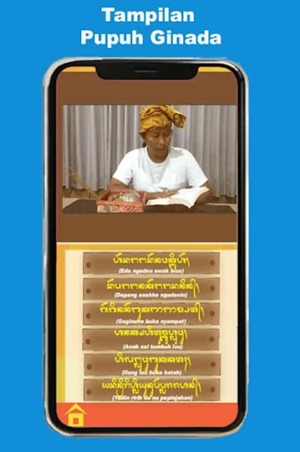 On the menu there are three buttons that lead to each pupuh, namely: Pupuh Ginada, Pupuh Ginanti, and Pupuh Pucung. there is a video in each stanza, when the bait button is pressed.