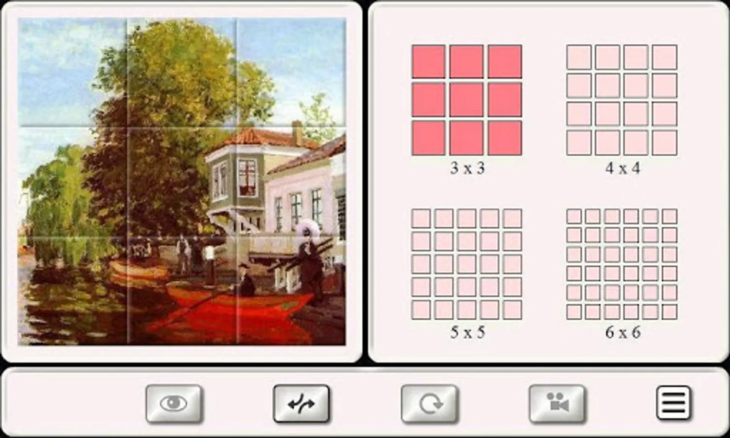 - 4 levels of difficulty puzzles – 3x3, 4x4, 5x5, 6x6;