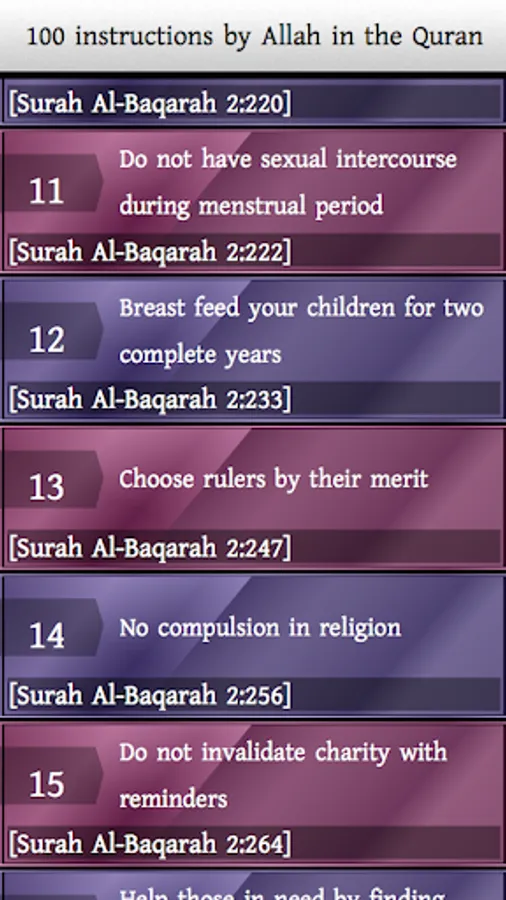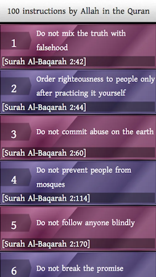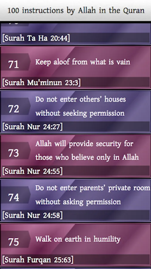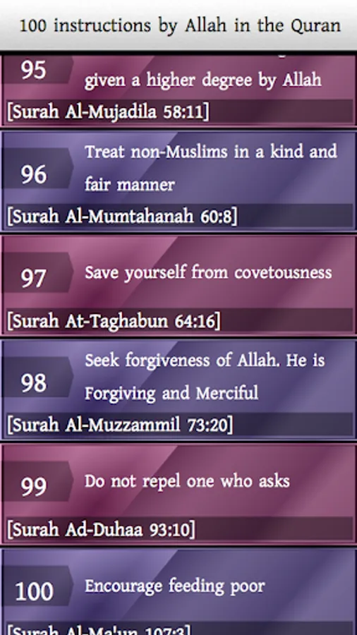 100 Advices From Holy Quran, from different verses of Al-Quran.