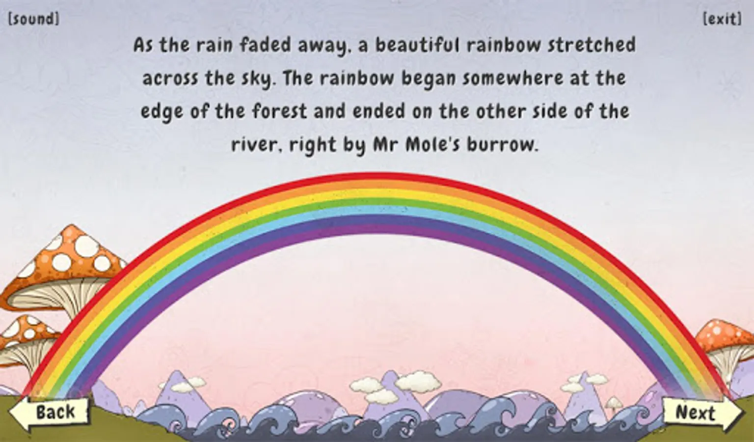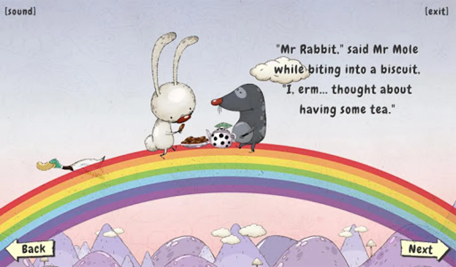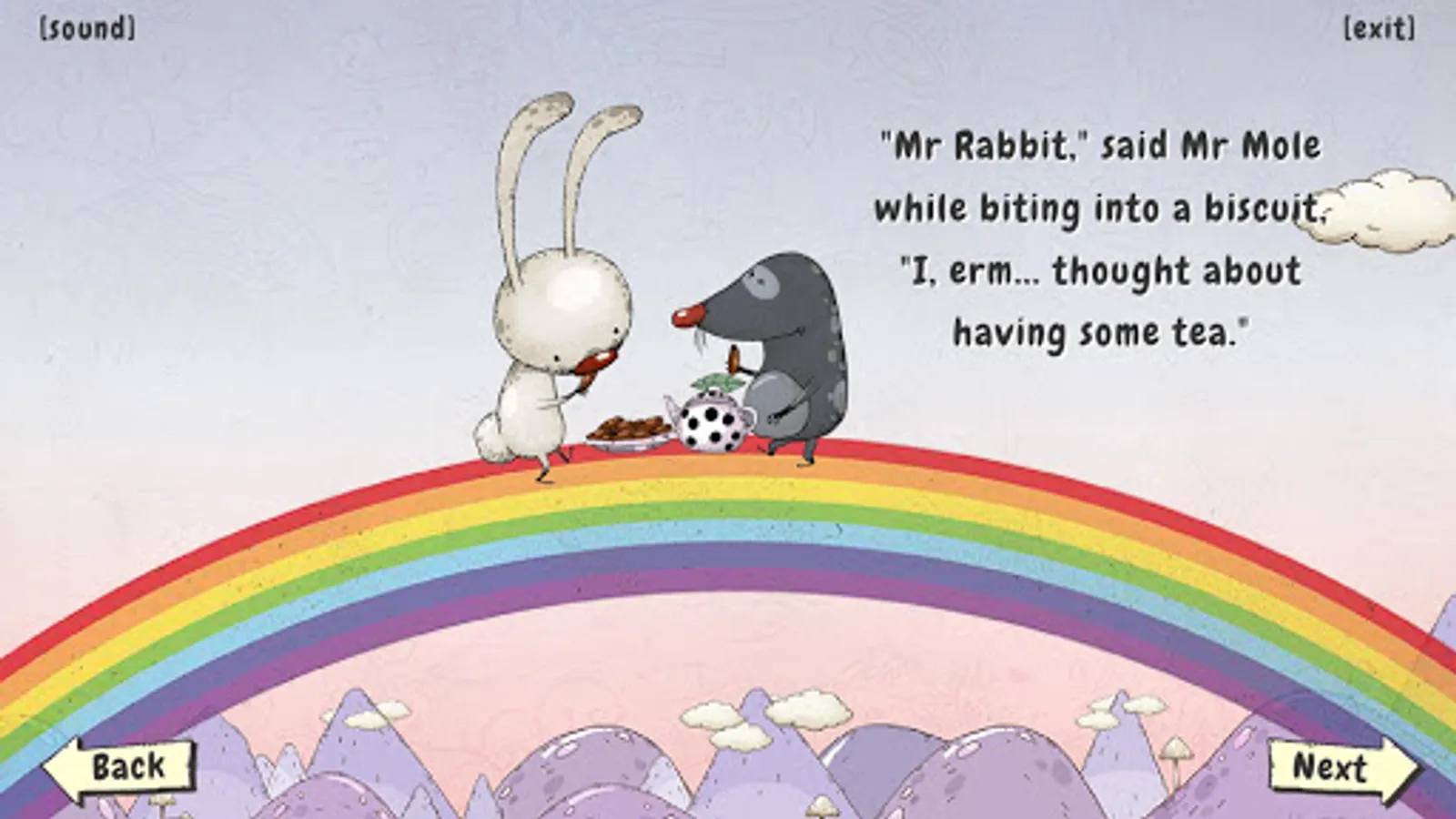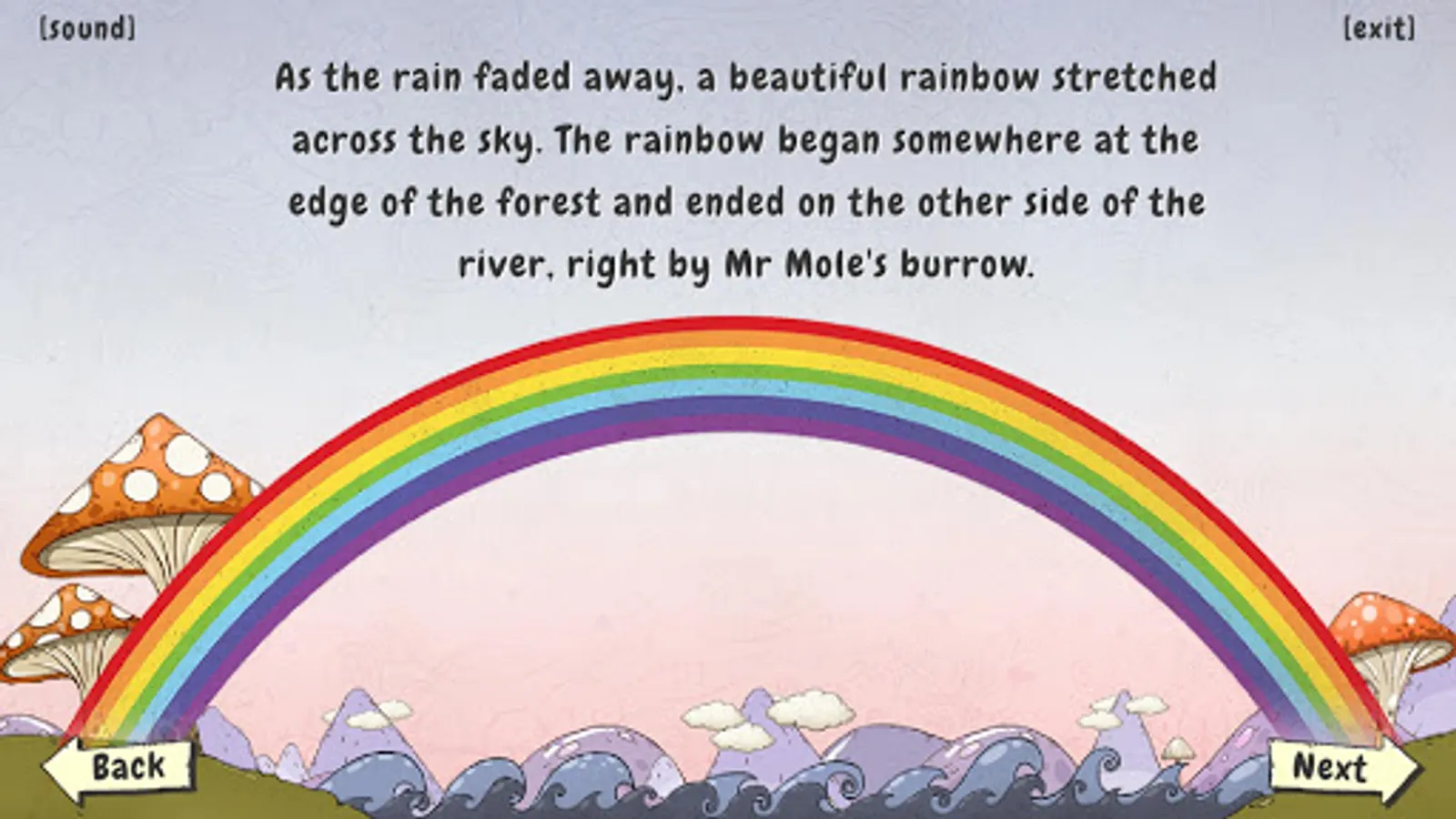 In order to get to Mr Rabbit and Mr Mole, Icky Mr Fox came up with a devious plan to cut down the rainbow, on top of which they sat, feeding ducks. Once again, things don’t go as planned.