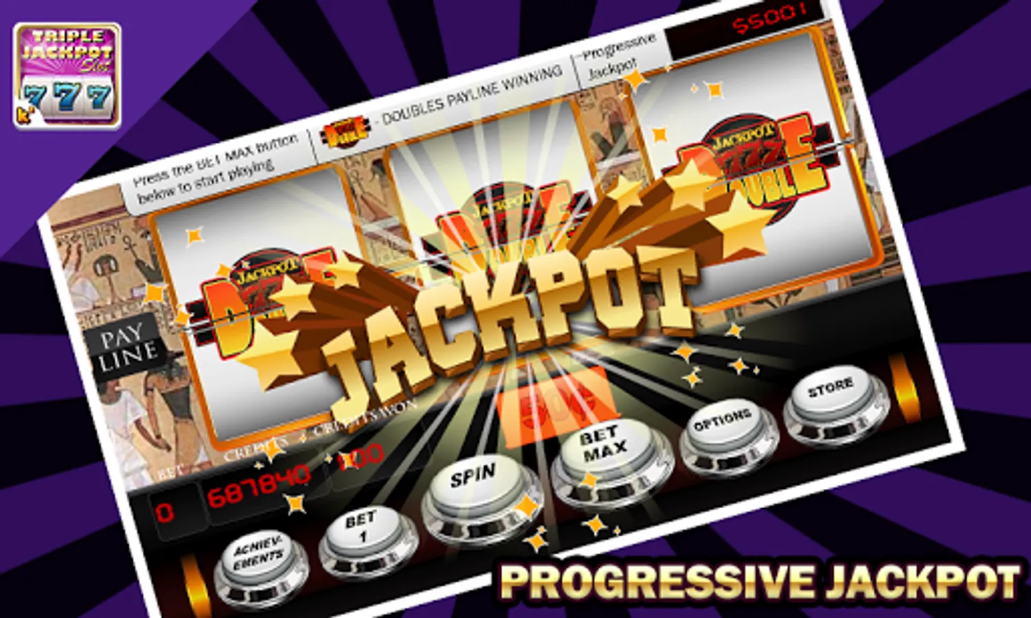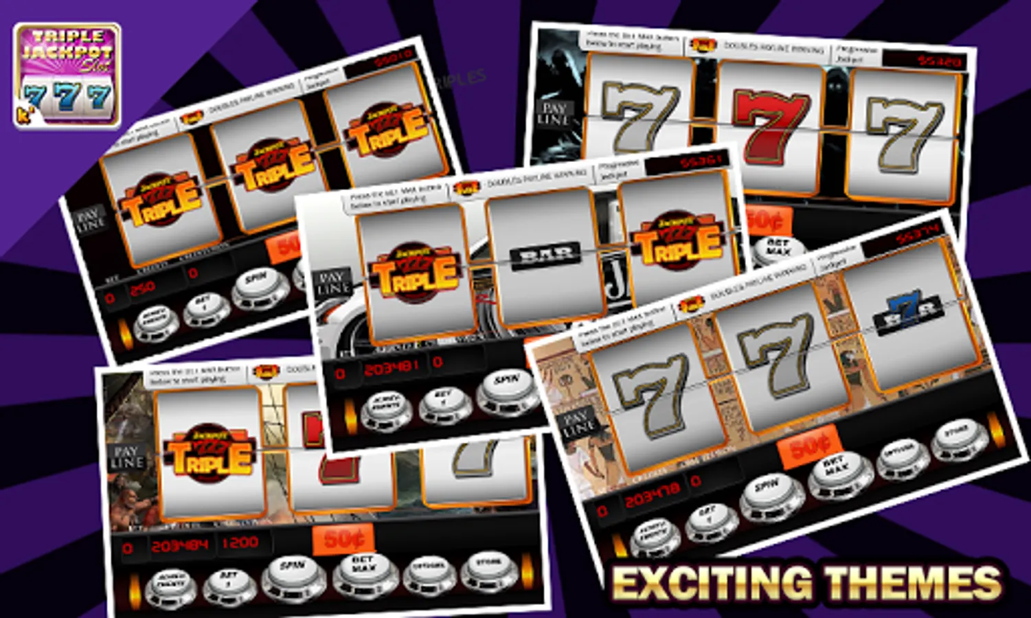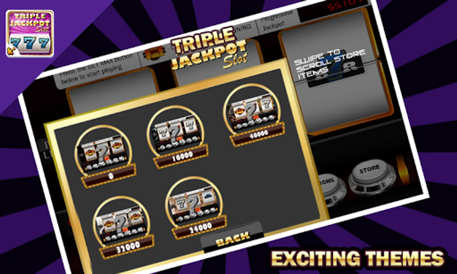 Triple Jackpot Slots has the most enticing and exciting game play with astonishing designs and user interface. Grab all the backgrounds and store items from the virtual store and enjoy the game with all the backgrounds.