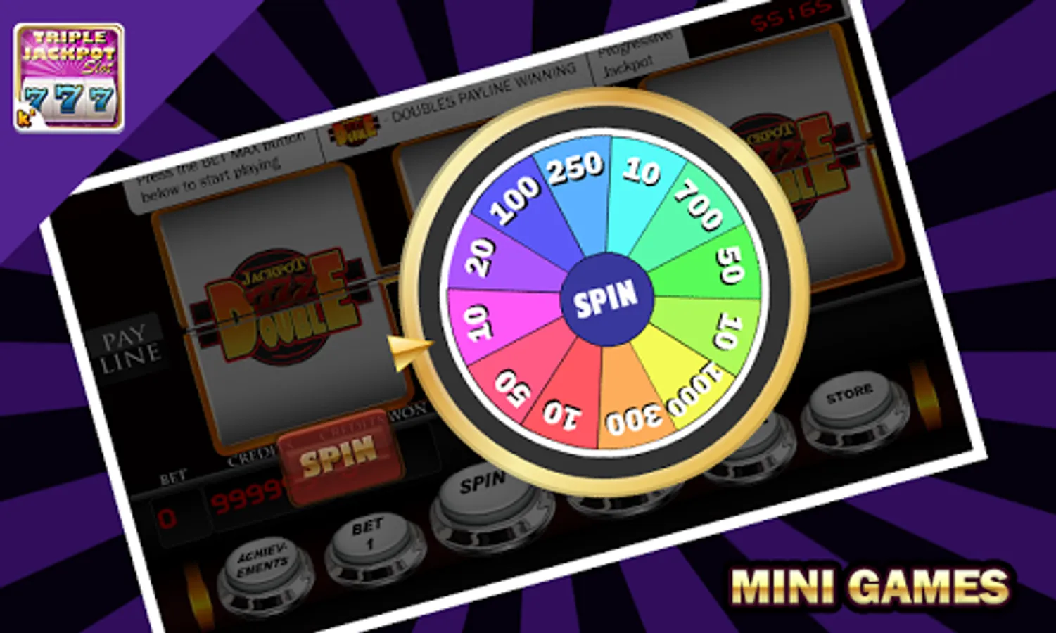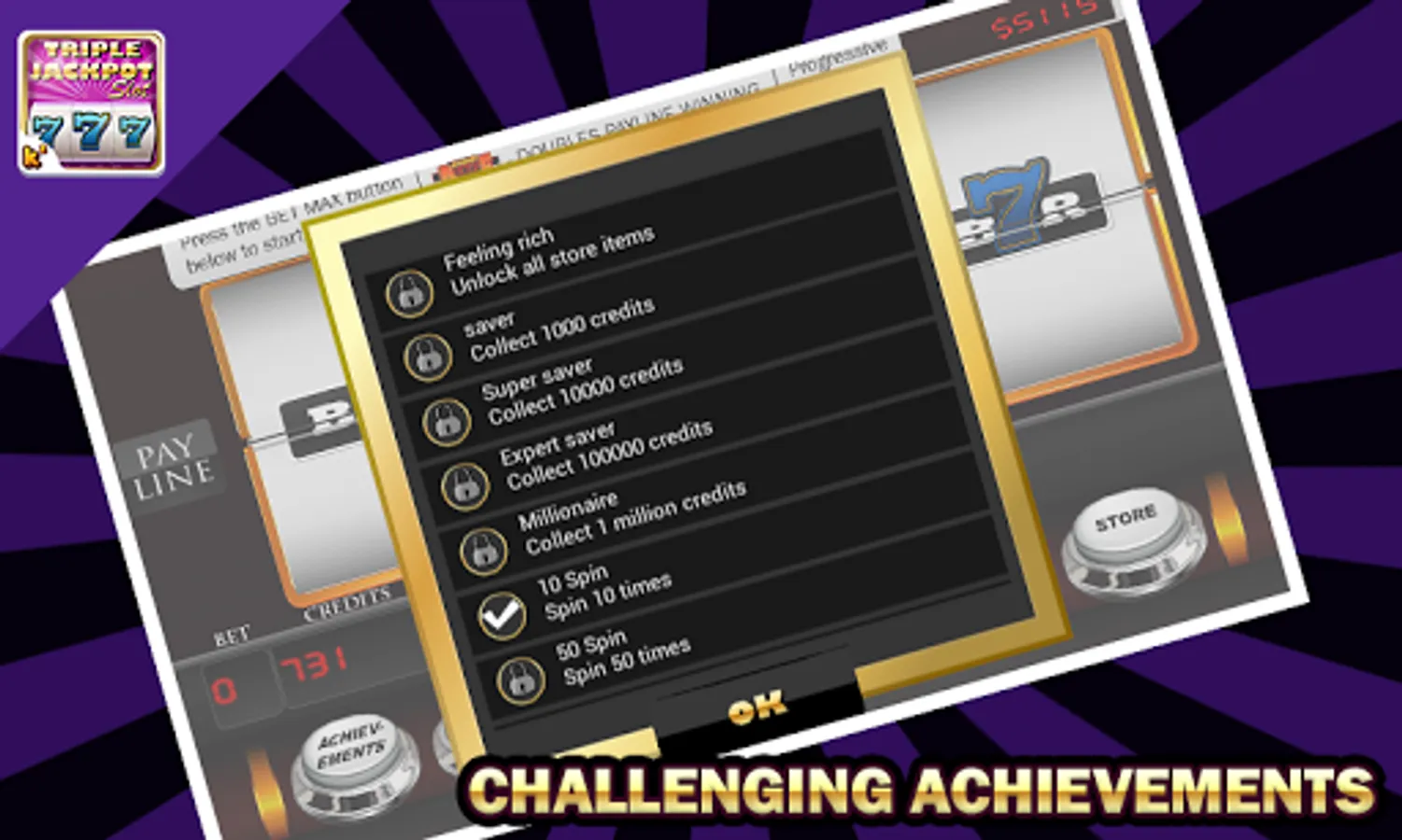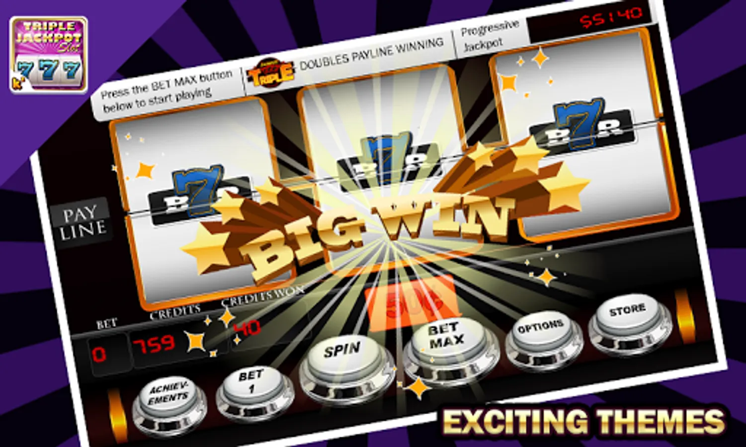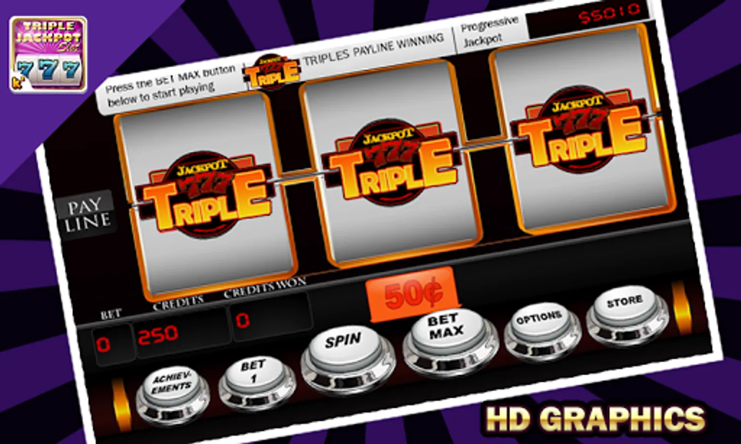 Enjoy playing the famous casino game with Triple Jackpot Slots and unlock all the store items and achive more to become a pro spinner.