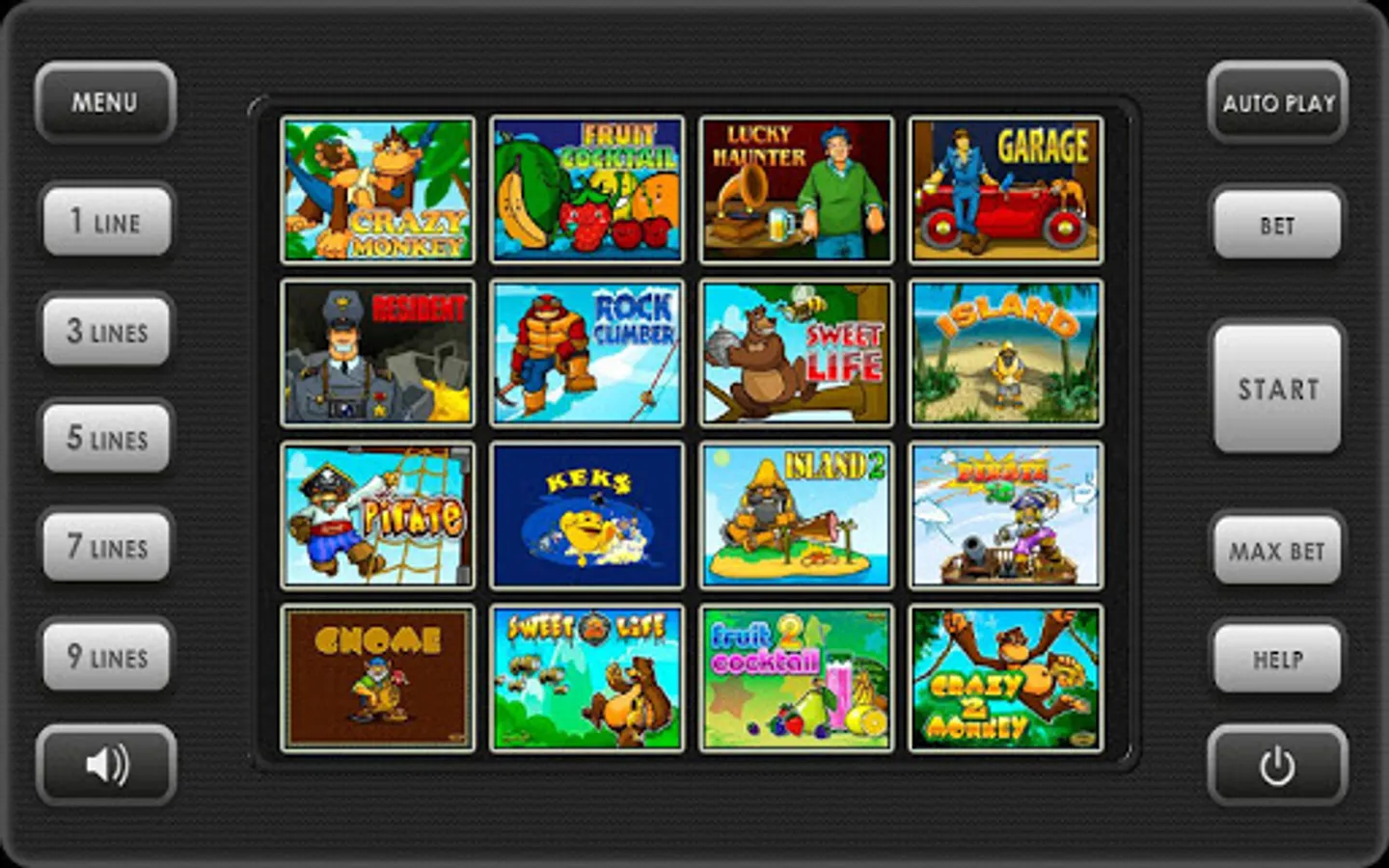 16 well known video slots from Igrosoft: Crazy Monkey, Fruit Cocktail, Resident, Rock Climber and many more.