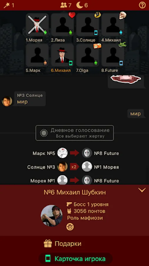 Do you lack communication? No friends? - So, participation in the virtual life of the city - this is what you need! Many of the participants have already found in the game Mafia not only friends, but also loved ones! In addition, you not only learn how to bring liars to clean water, but also begin to understand other players even through silent voting. You will be surprised how trivial for you will be the attempts of rivals to hide their Character. Cunning, deceit, betrayal and other vices will retreat before the art of intuition and calculation. This priceless gift is useful to absolutely every one of us.