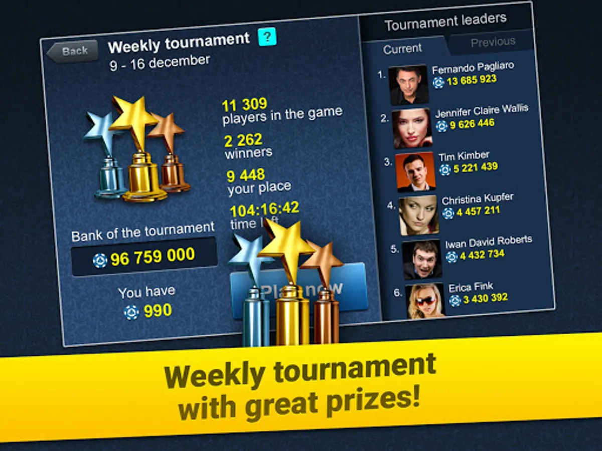 Get your friends and play with them stunningly addictive Texas Hold`Em poker, rendered with amazing graphics and user-friendly interface — just like in a real poker casino!