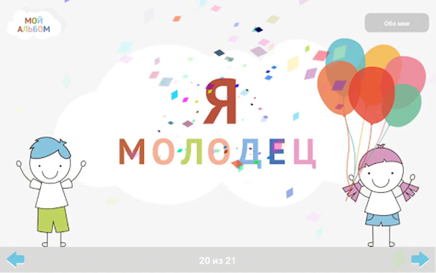 The application allows you to visualize the change in the status of the child, clearly demonstrating the changes at the level of his achievements, forming self-awareness, gender and age and role identification.