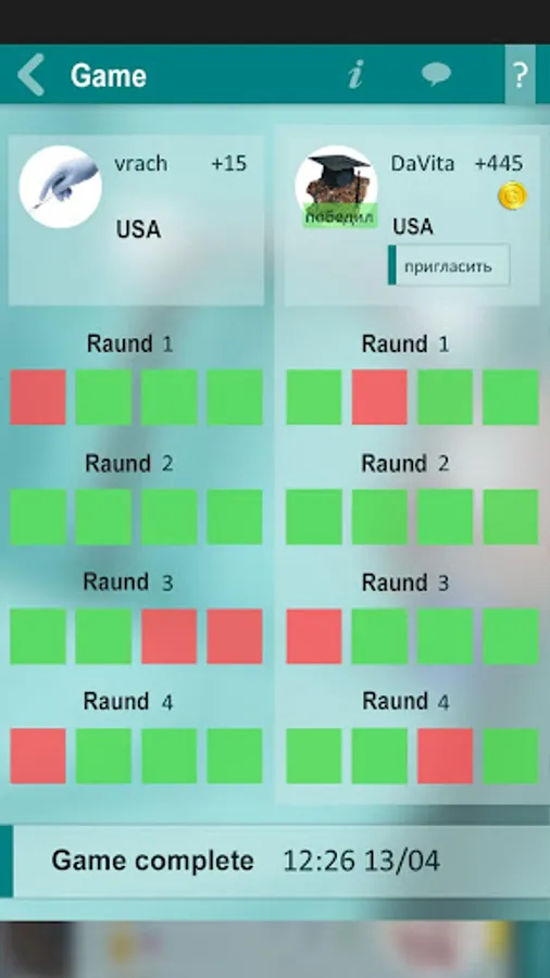 • Quick game. Just try your hand and test your knowledge without spending 4 rounds.